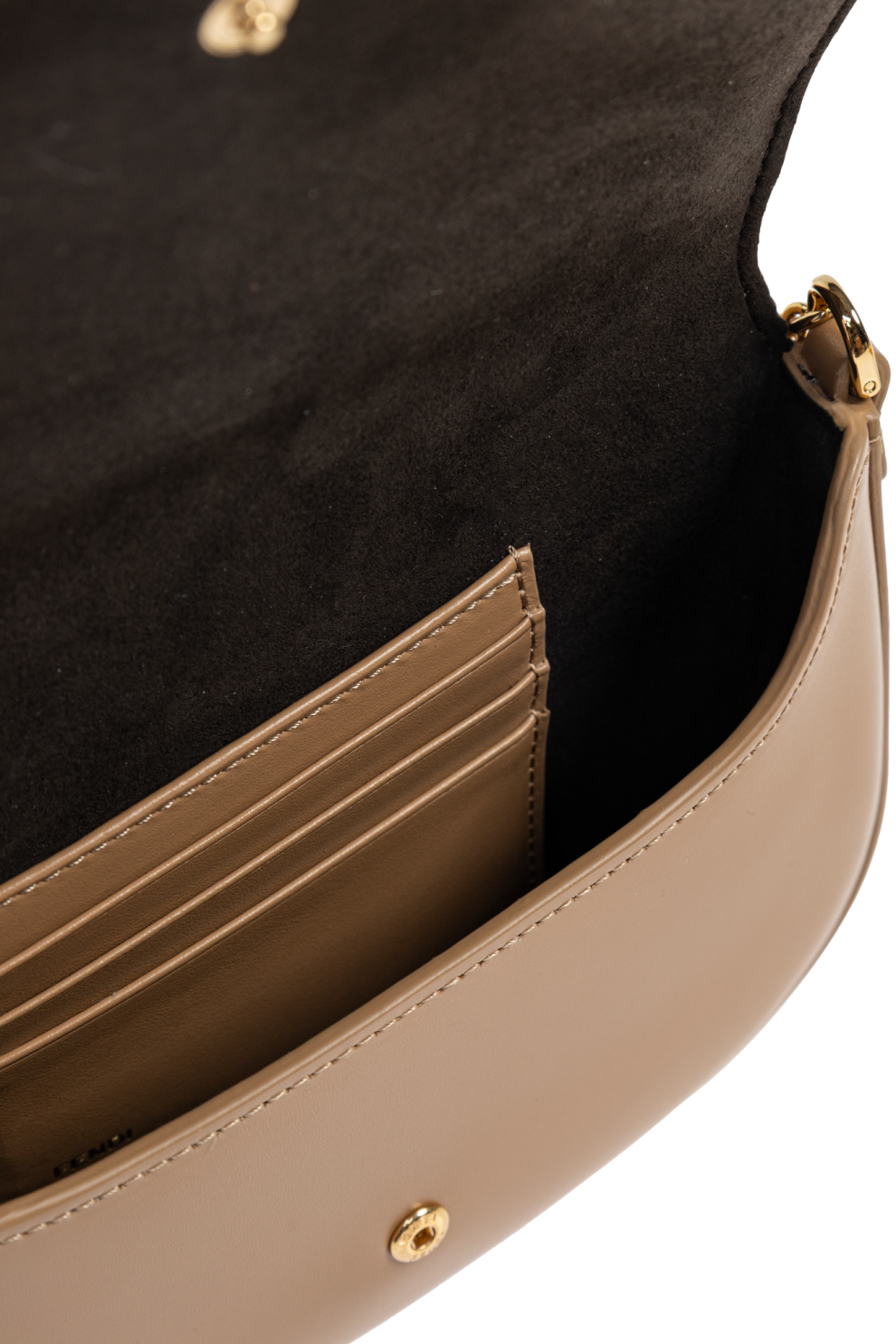 Продуманное внутреннее пространство с вместительным отделением для карт позволяет поддерживать безупречный порядок. Короткий плечевой ремень с тонкой цепочкой и второй съемный кожаный ремень позволяет разнообразить варианты стилизации от повседневных образов до более светских выходов.