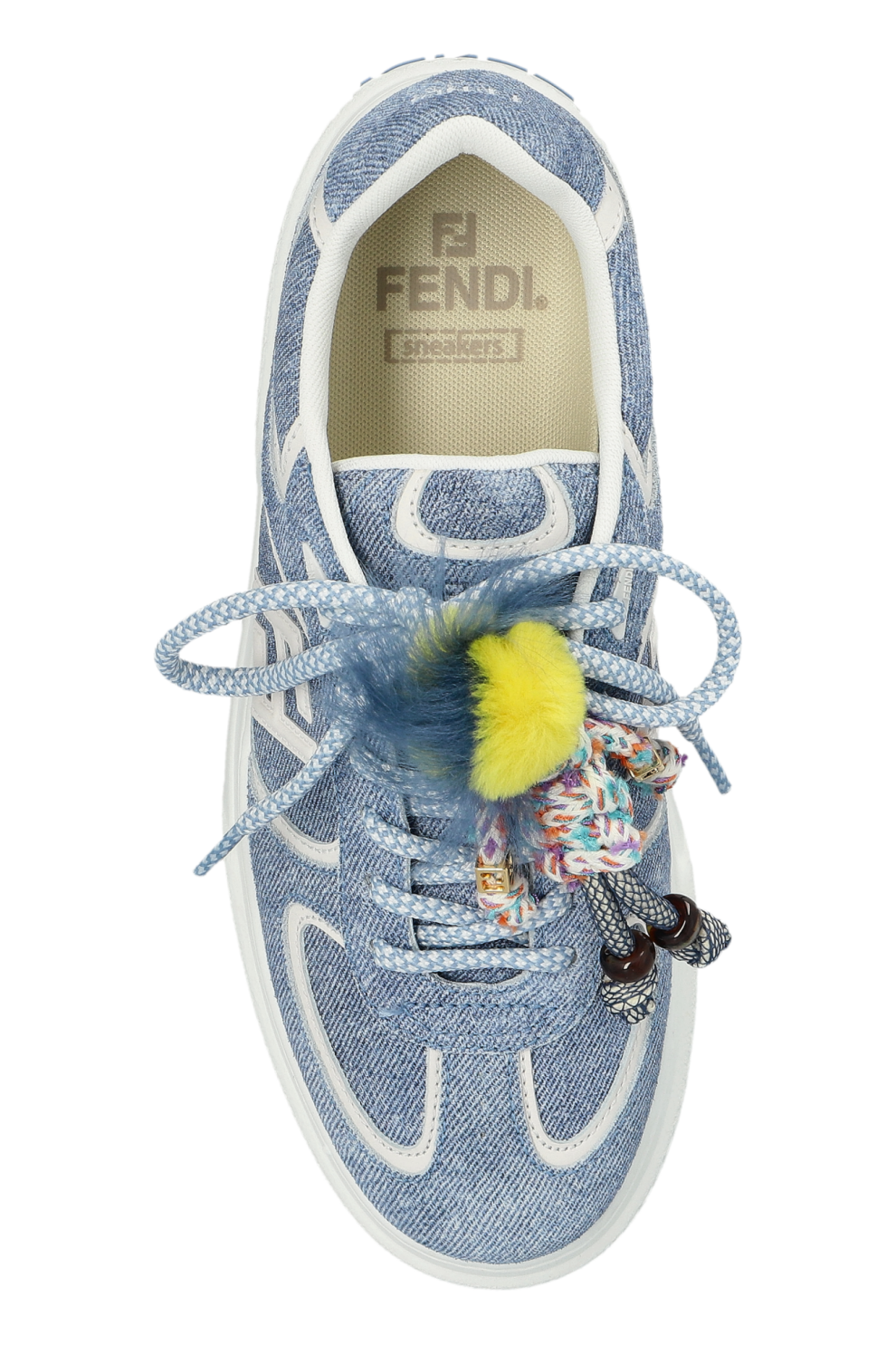 Фирменные акценты подчёркивают уникальность кроссовок: стилизованная буква Fendi на боковой панели и тиснённый логотип на пятке делают образ сразу узнаваемым и элегантным.