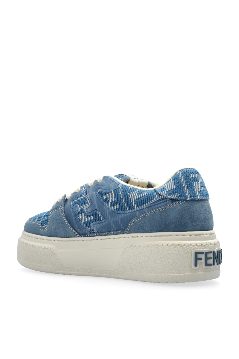 Верх изготовлен из денимоподобного материала с изысканными замшевыми вставками, создающими текстурную глубину и подчёркивающими престиж образа. Контрастные белые шнурки и крупная надпись FENDI на пятке добавляют современный акцент, а логотип на язычке завершают фирменный стиль.