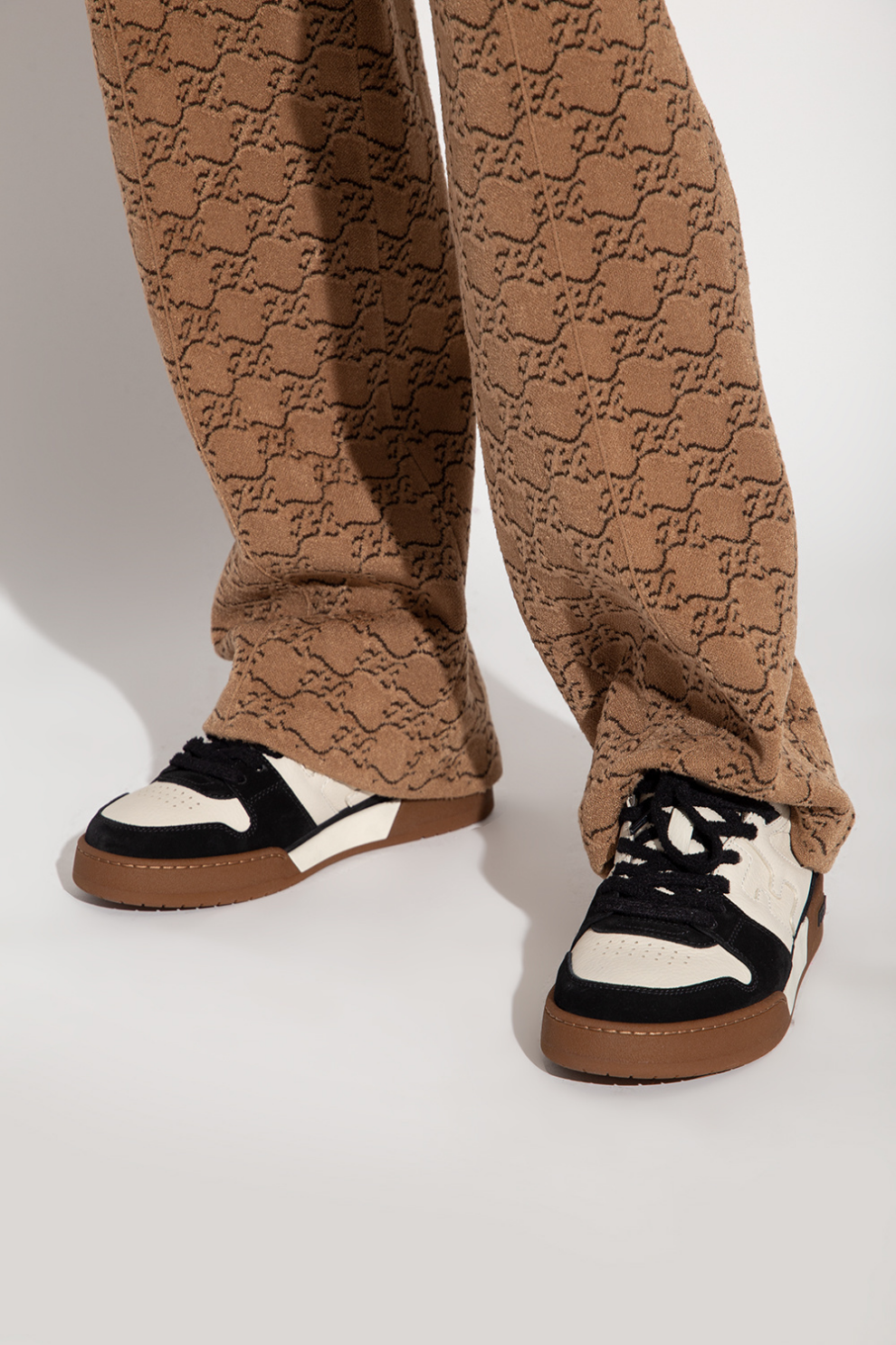 Кроссовки Match от Fendi воплощают утончённый баланс спортивной эстетики и фирменного итальянского шика. Модель выполнена в гармоничной палитре кремового, чёрного и коричневого оттенков, создавая выразительный и в то же время универсальный образ.