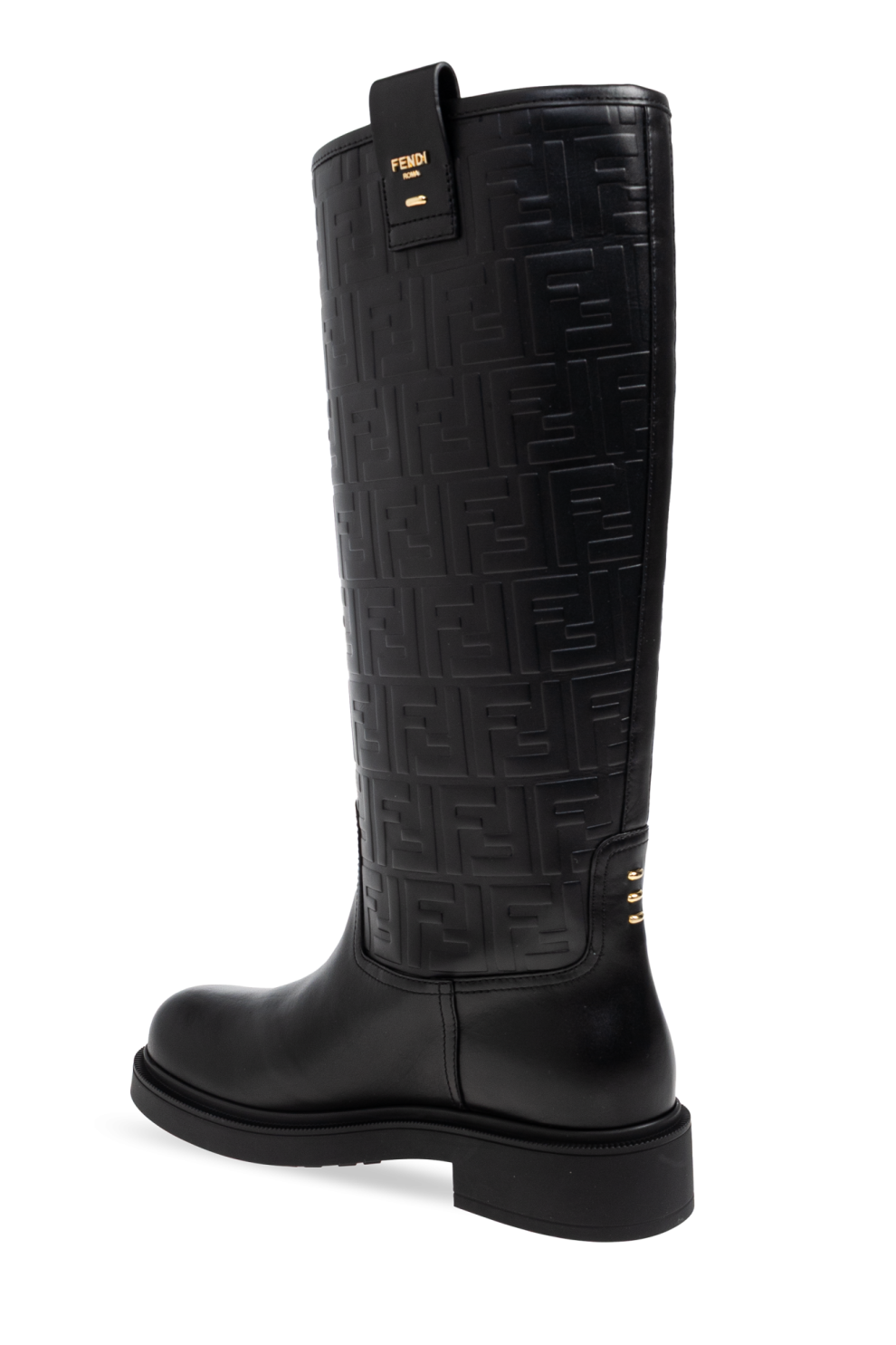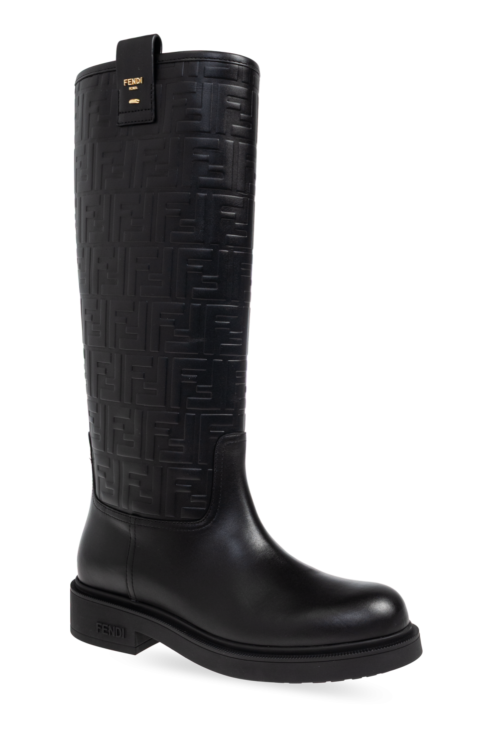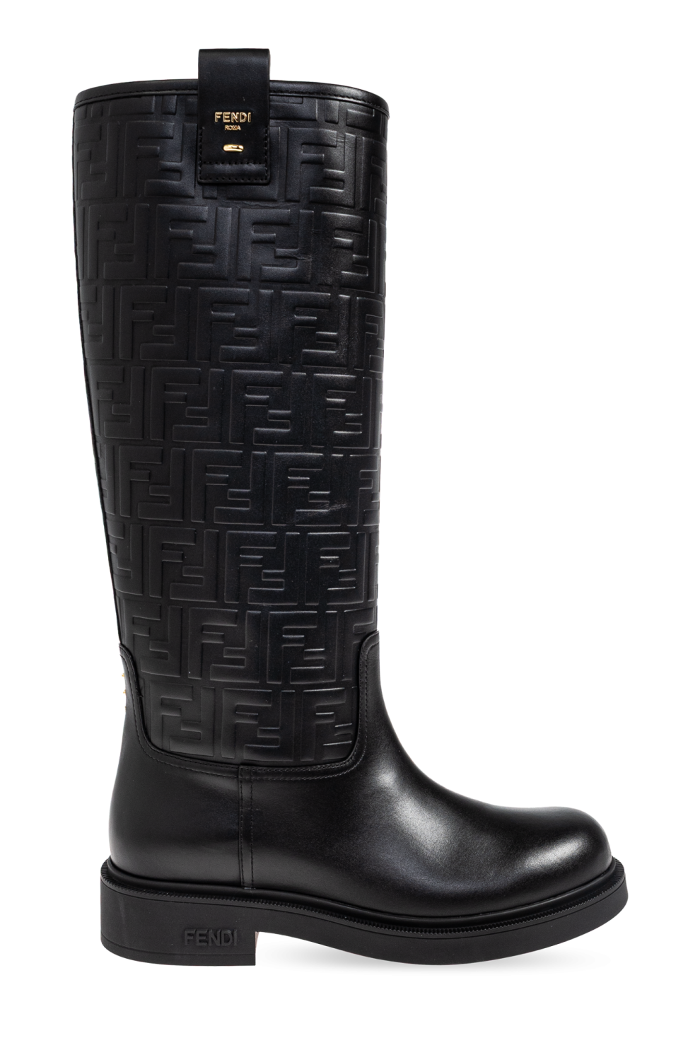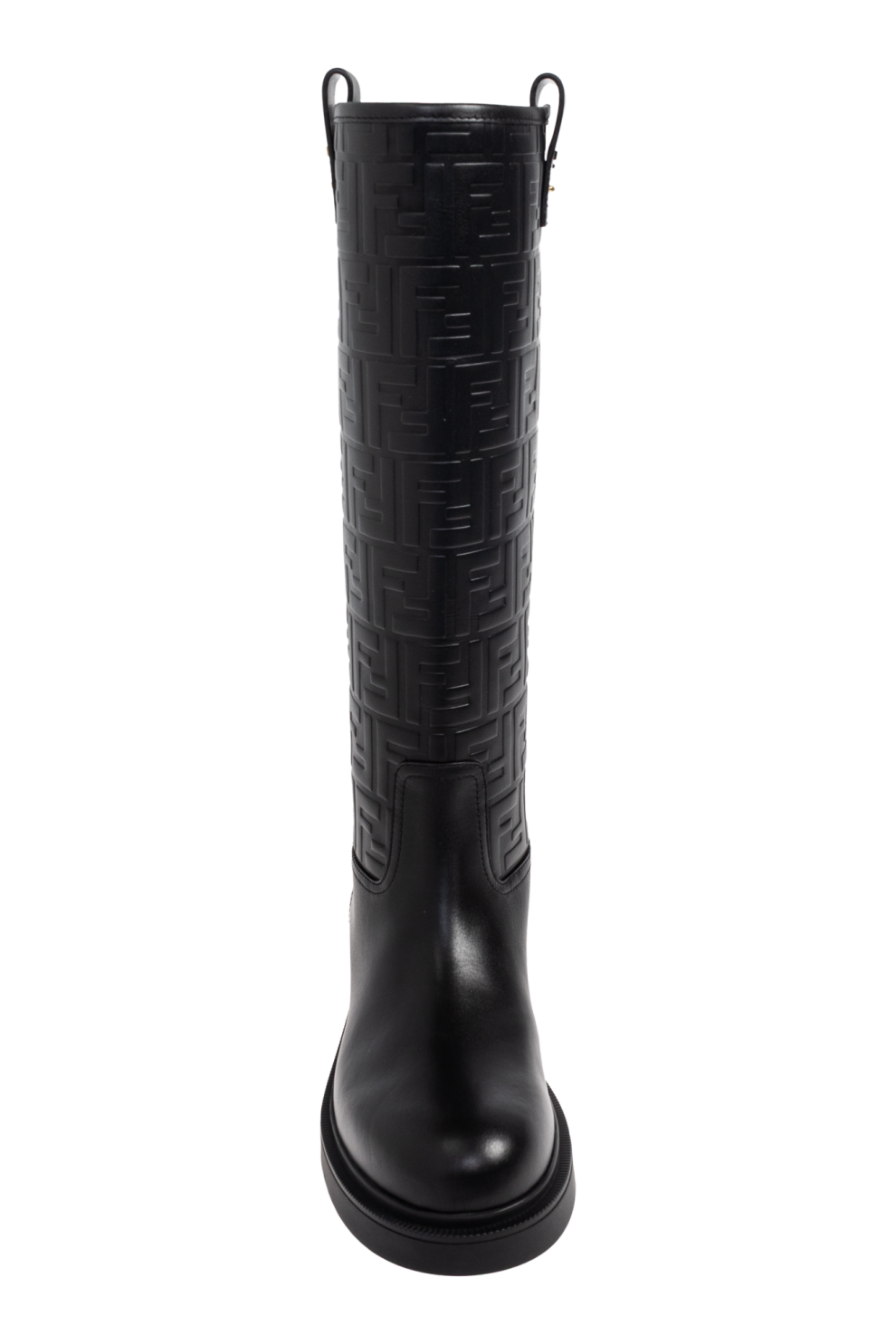 Кожаные сапоги Fendi – воплощение утонченной элегантности. Классический силуэт с высоким голенищем, прямым верхом и круглым носком изящно подчеркивает форму ноги, придавая каждому шагу исключительную лёгкость. Чёрный цвет в целом подчёркивает универсальность и вневременной характер обуви.