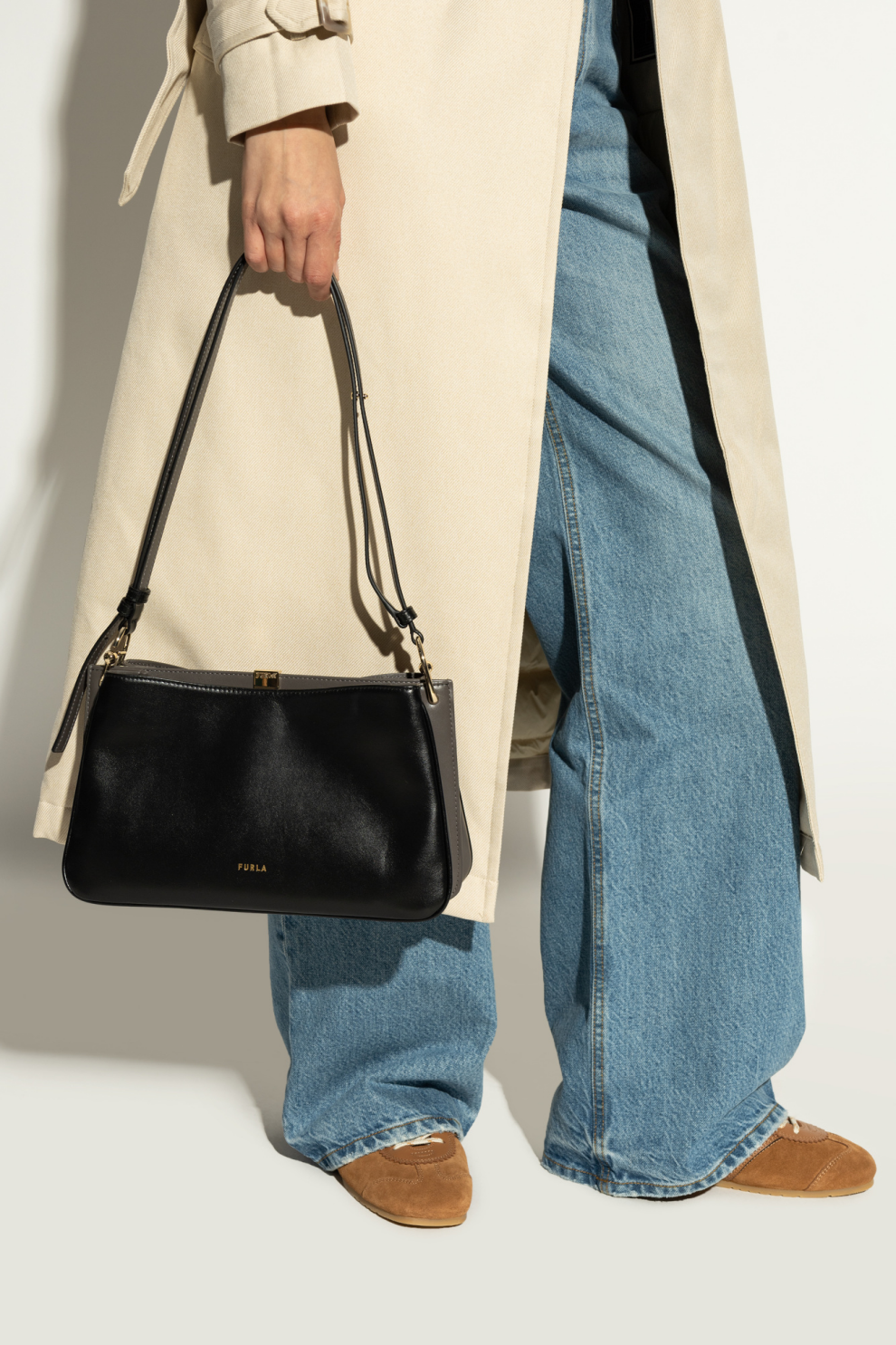 Высококачественная натуральная кожа имеет гладкую, слегка мерцающую текстуру , подчёркивающую мастерство исполнения. Глубокий классический чёрный цвет добавляет элегантности, а изящный золотой логотип и гравированная застёжка «FURLA» изящно дополняют дизайн.