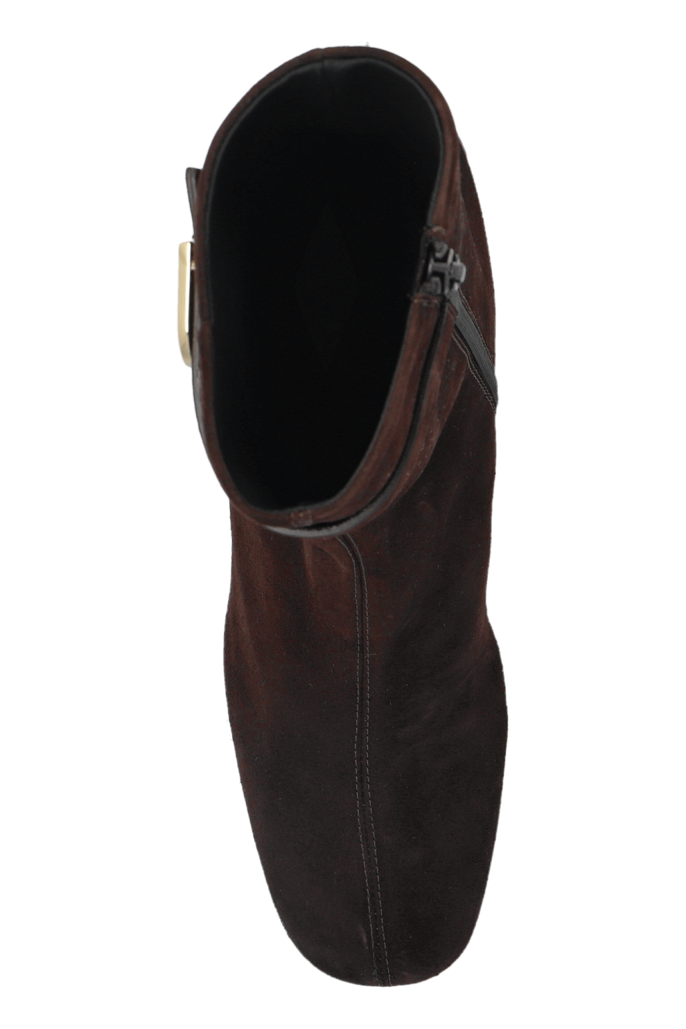 Женские замшевые ботильоны Chic — воплощение современной элегантности и безупречного мастерства. Модель выполнена из высококачественной коричневой замши, отличающейся мягкостью и благородным матовым блеском, что придаёт изделию утончённость и графичность силуэта. Тонкий миндалевидный носок, аккуратный крой и сбалансированные пропорции подчёркивают изящество щиколотки и создают изысканный, узнаваемый силуэт.