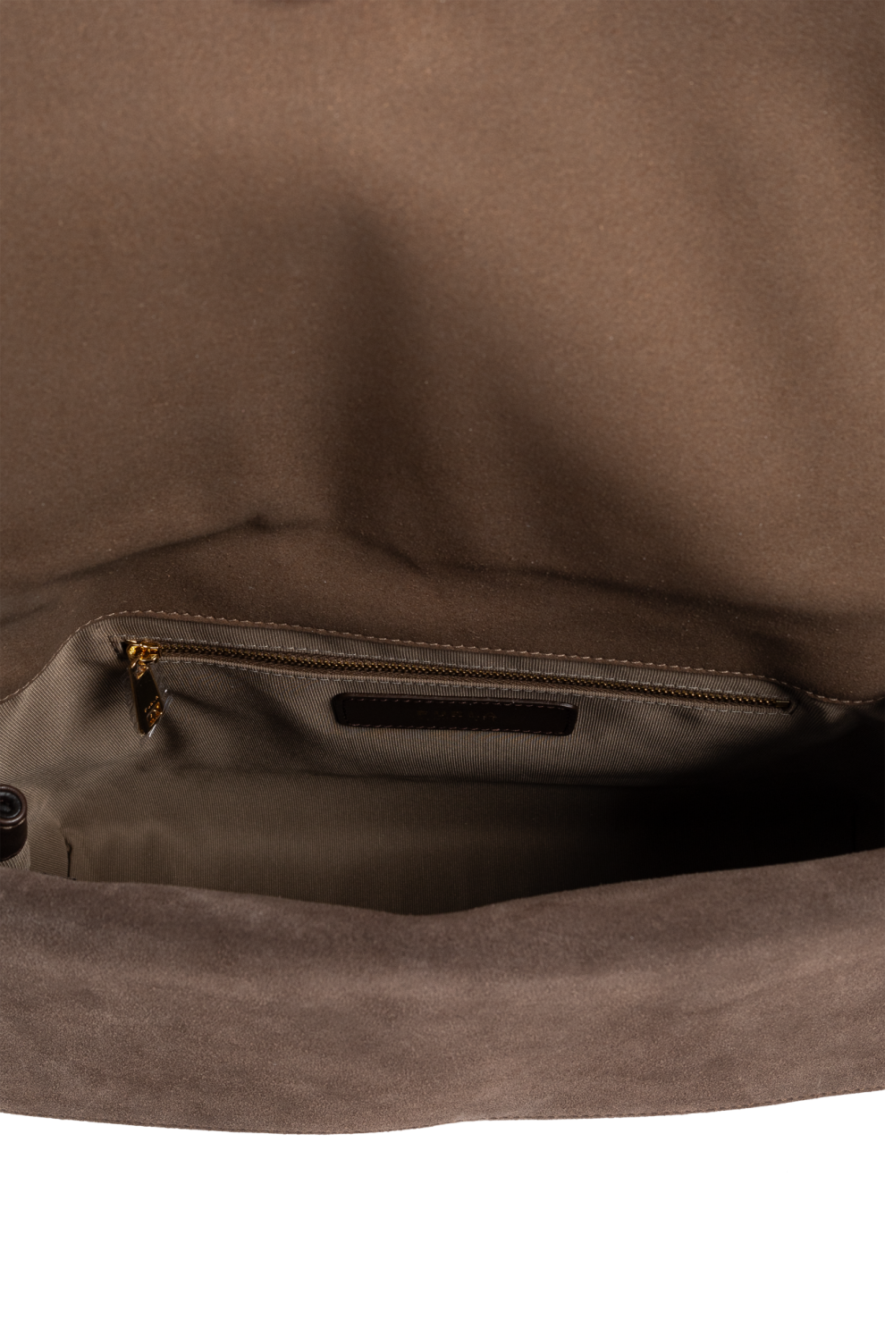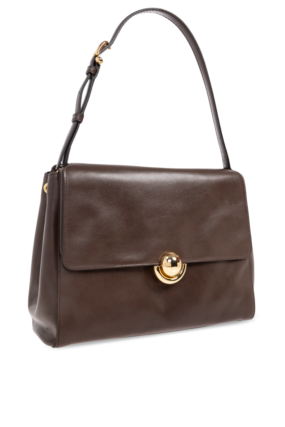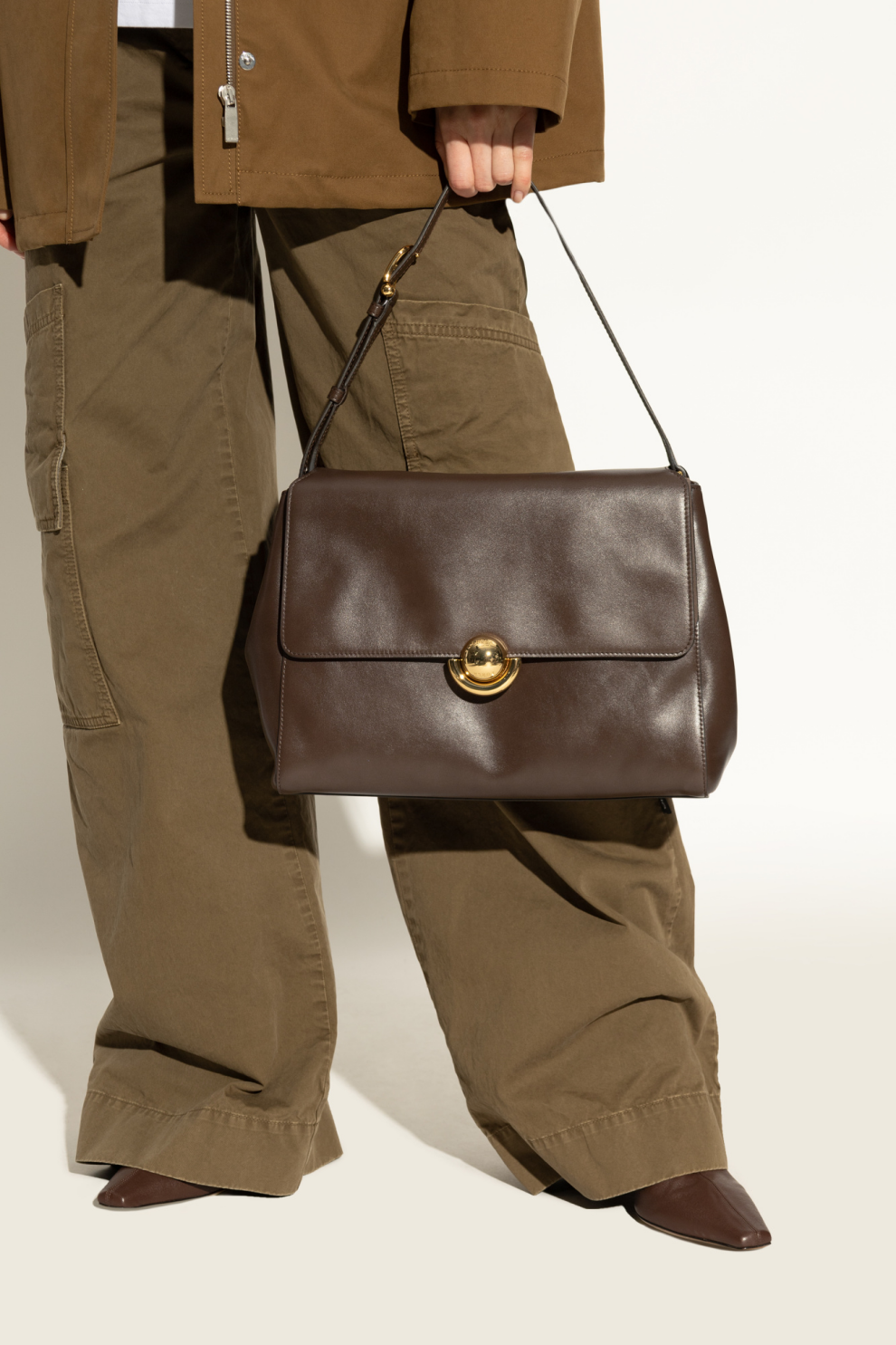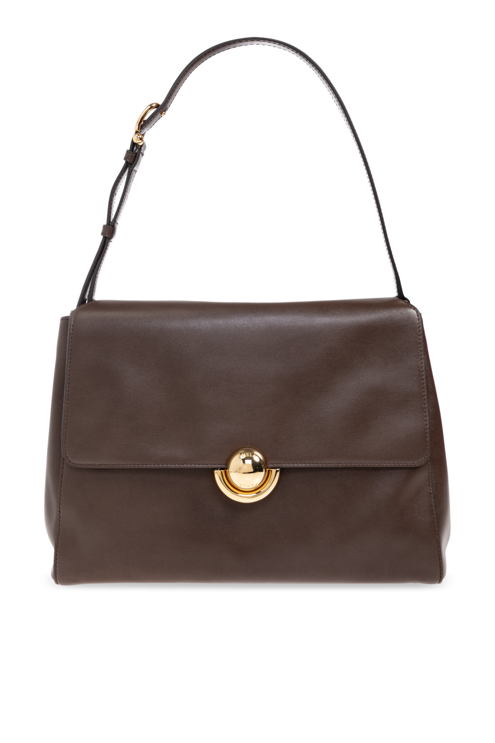 Эта модель оснащена эффектной сферической застёжкой золотистого оттенка с выгравированным логотипом бренда. Сдержанная подпись дизайнера также украшает заднюю часть сумки. Тщательно проработанная внутренняя этикетка и детали демонстрируют мастерство исполнения. Благодаря минималистичному дизайну сумка идеально дополнит любой наряд, подчеркнув индивидуальный стиль своей владелицы.