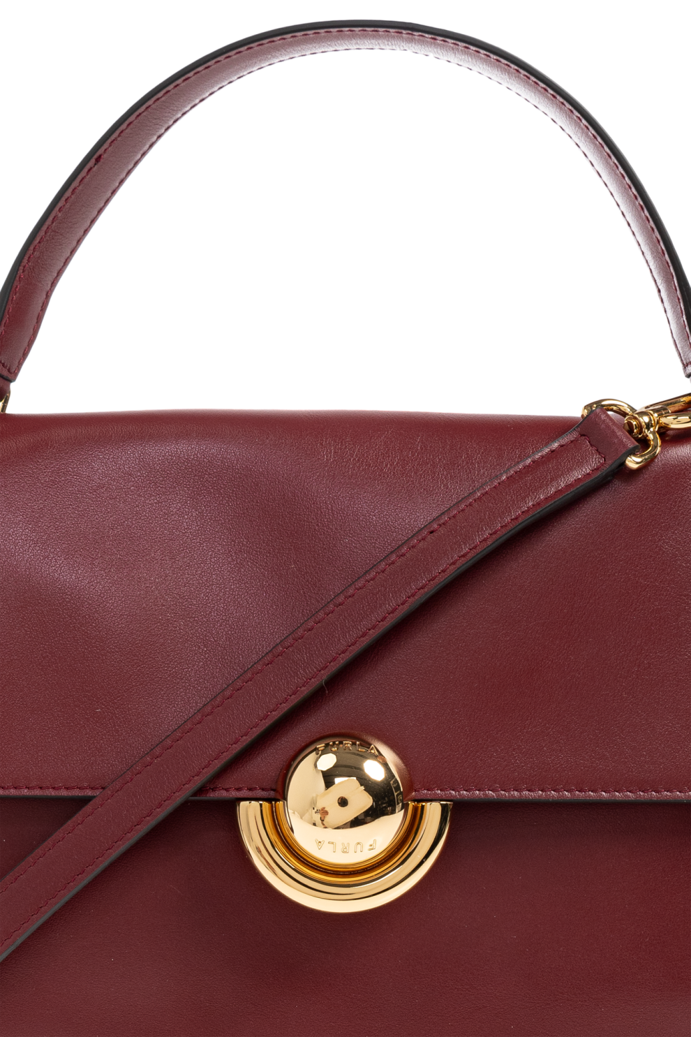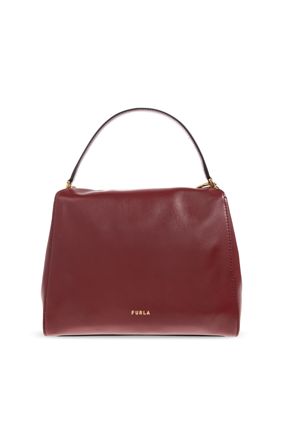 Эффектная круглая золотистая застёжка с тиснёным логотипом FURLA добавляет элегантности, а едва заметная золотая маркировка на задней стороне добавляет изысканности. Клапан с декоративной застёжкой обеспечивает сохранность содержимого, а удобная короткая ручка и регулируемый ремешок обеспечивают разнообразные варианты переноски.