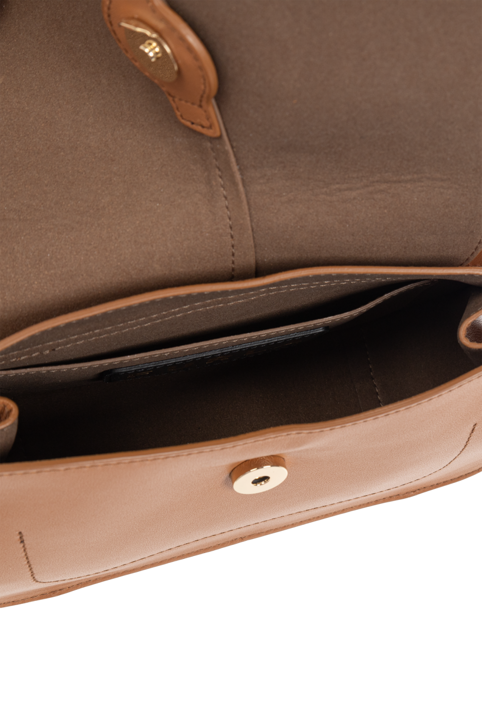 Сумка Furla Flow Mini — воплощение итальянского мастерства, сочетающее классическую элегантность с изысканными деталями. Её плавно закруглённая прямоугольная форма и тёплый коричневый оттенок натуральной кожи создают неподвластное времени очарование.