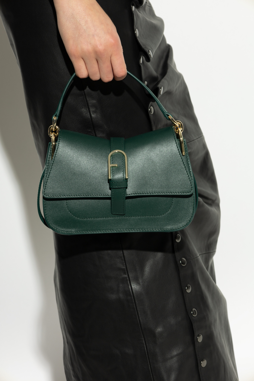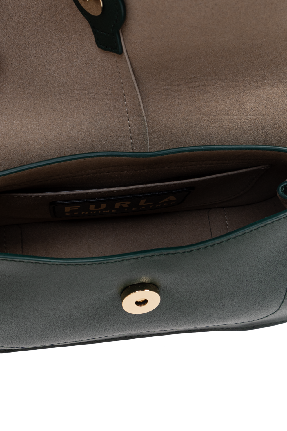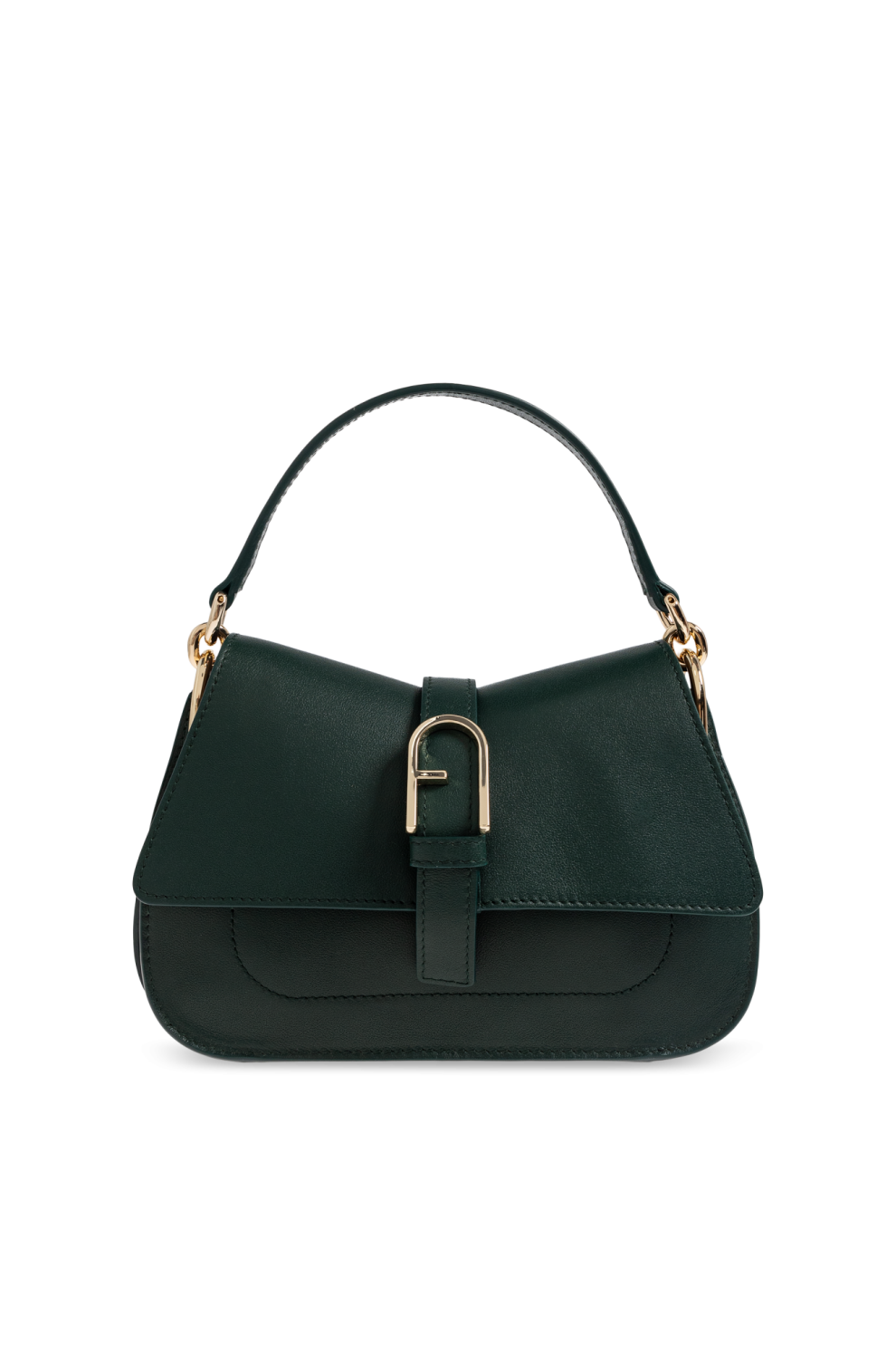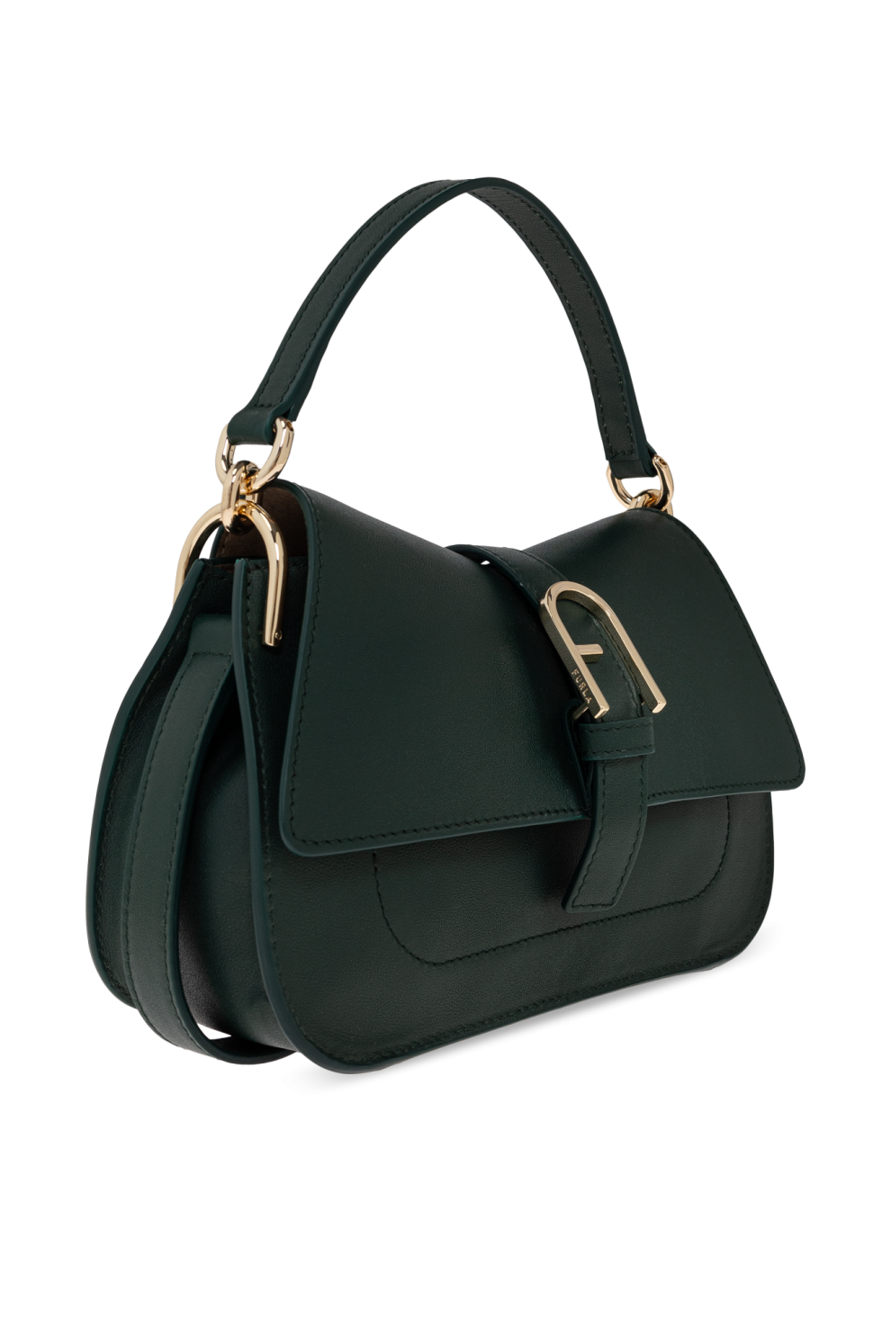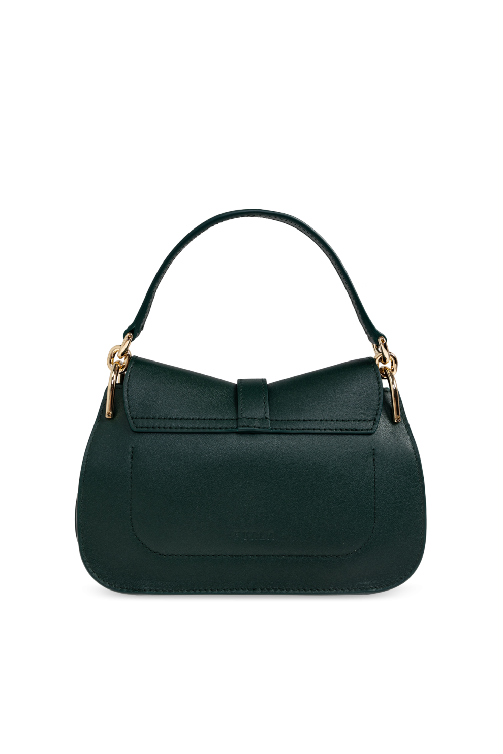 Золотые детали – F-образная пряжка и металлическая фурнитура – придают сумке роскошный вид. Носить её можно в руке или на регулируемом ремешке, что обеспечивает комфорт и универсальность. Изящный логотип FURLA на внутренней нашивке и тиснение на спинке подчёркивают уникальность сумки.