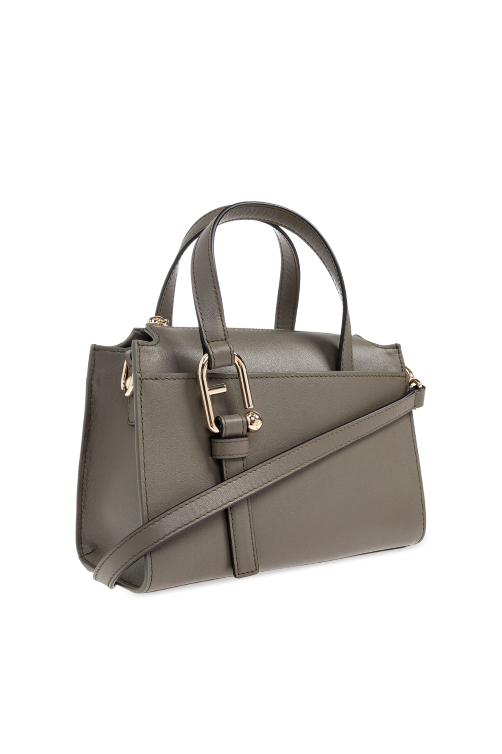 Минималистичный дизайн, лишенный лишних деталей, подчеркивается золотой фурнитурой и оригинальной пряжкой с монограммой дизайнера, дополненной сферической аппликацией. Сдержанный тисненый логотип Furla украшает как внутреннюю, так и заднюю часть сумки, а короткие ручки и регулируемый ремешок обеспечивают удобство использования . Основное отделение на молнии позволяет безопасно хранить все необходимое.
