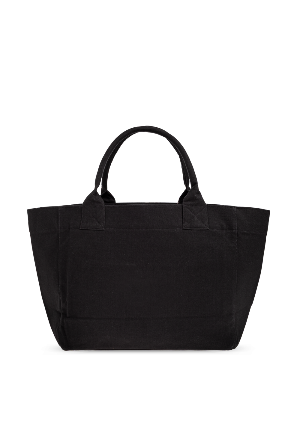Глубокий чёрный холст, выбранный за свою прочность и устойчивость к износу, создаёт элегантную и универсальную основу, идеально подходящую для активного городского ритма. Чёткий прямоугольный силуэт с широким дном обеспечивает отличную вместительность и аккуратную форму даже при полной загрузке.