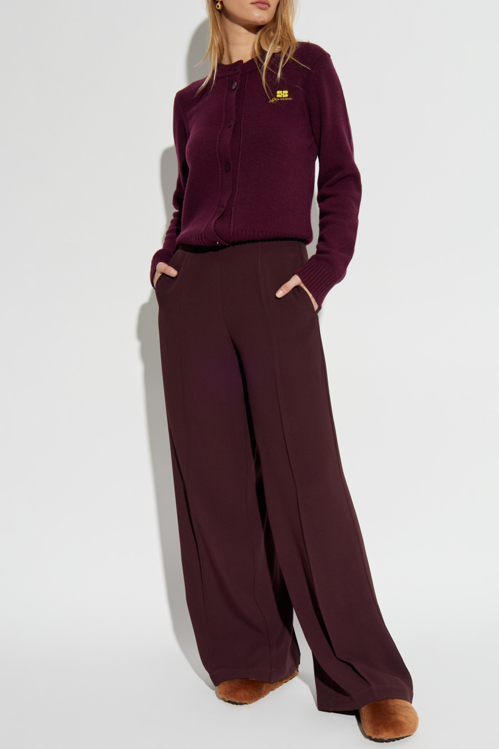 Кардиган GANNI – воплощение изысканного стиля и комфорта для самых взыскательных покупателей. Этот классический прямой кардиган длиной до бёдер выполнен из трикотажа с выразительной гладкой текстурой, сочетающей элегантную шерсть с мягкостью вискозы. Глубокий, однородный бордовый цвет придаёт изделию уникальный, изысканный характер.