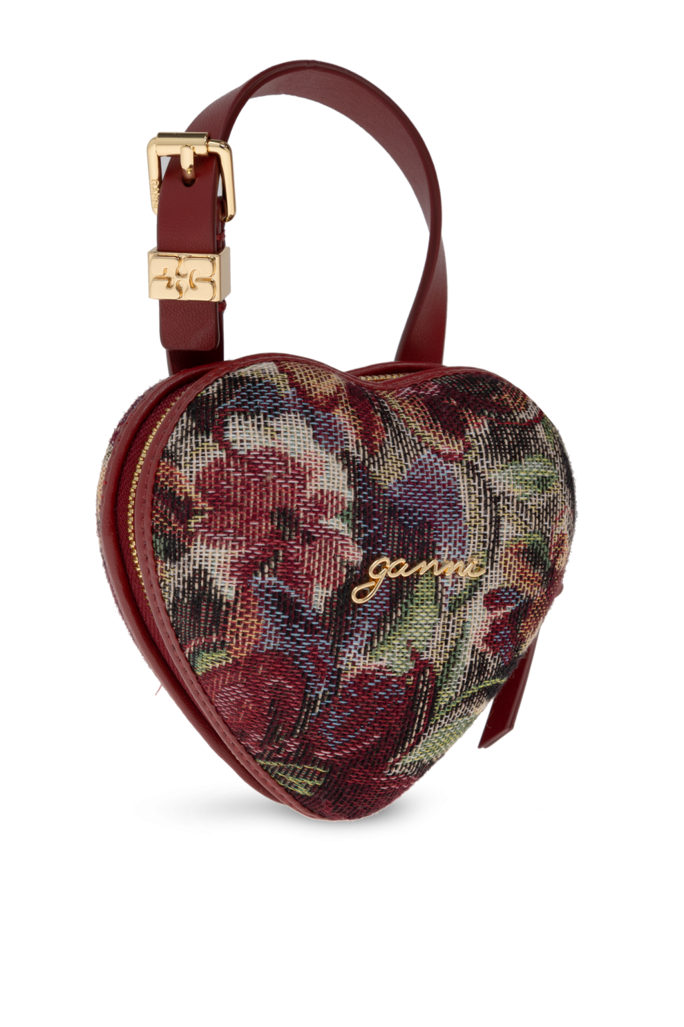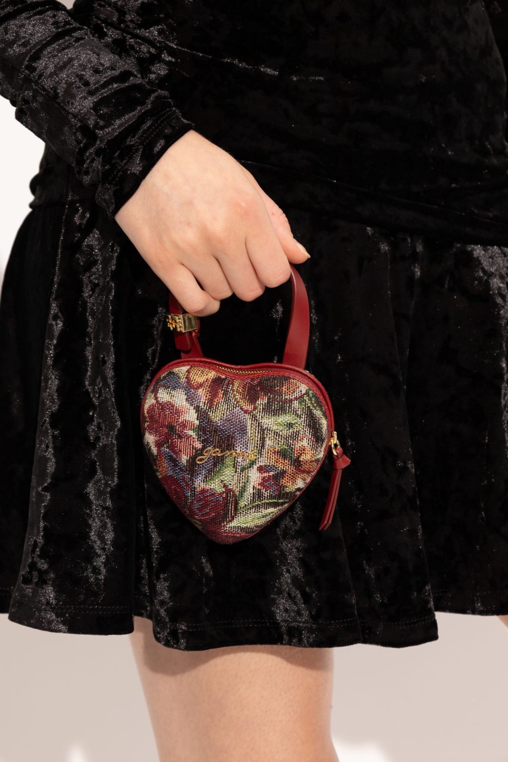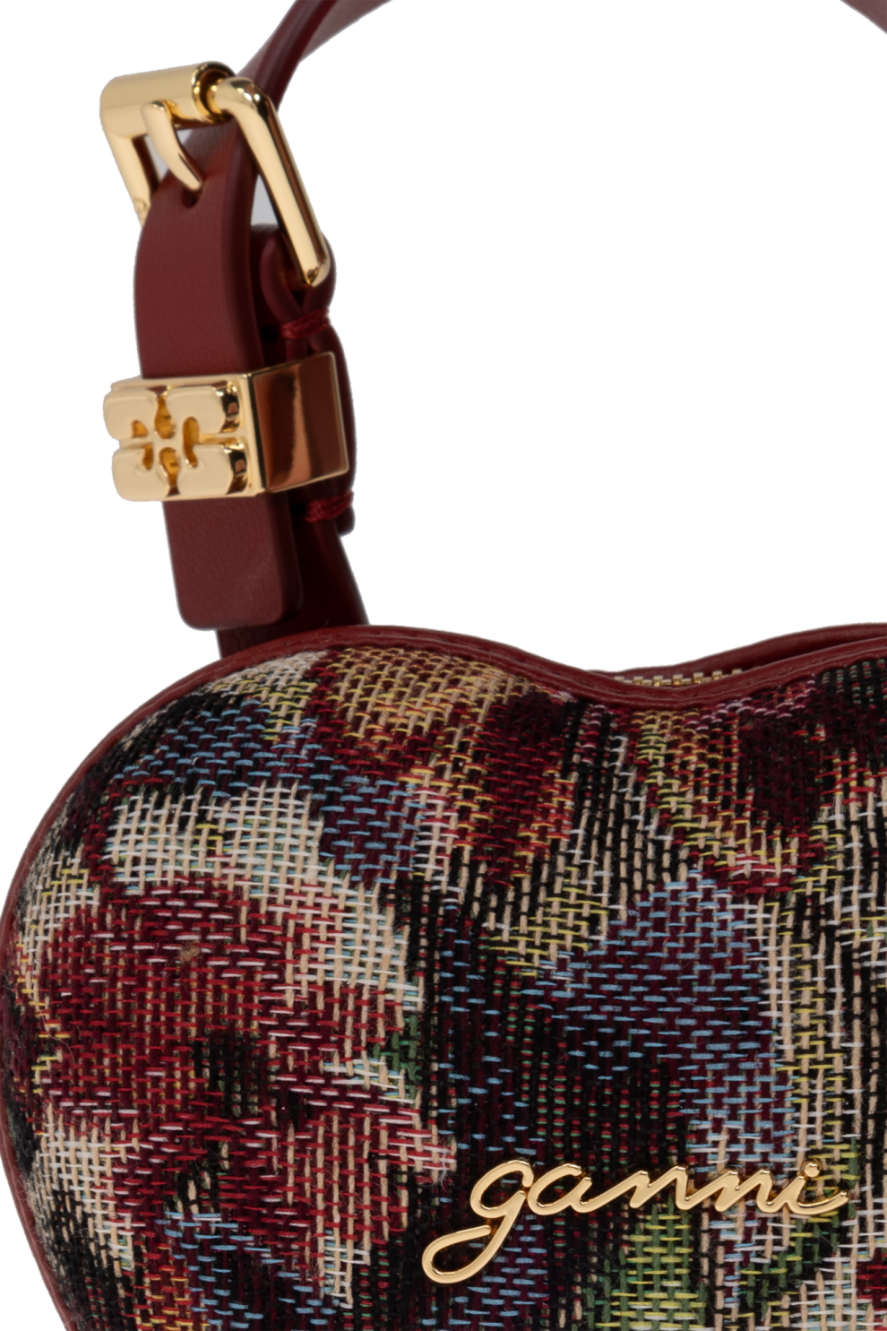 Миниатюрная сумка Ganni Nano Heart — воплощение игривой элегантности и фирменного скандинавского шарма бренда. Её очаровательная форма в виде сердца сразу притягивает взгляд, а тщательно проработанный текстильный узор, напоминающий гобелен ручной работы, наполняет образ индивидуальностью и теплом.