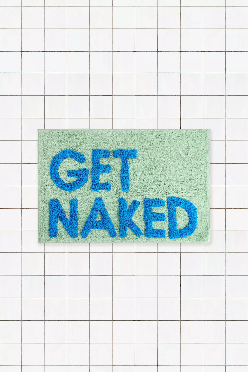 Зеленый декоративный коврик с надписью «Get Naked» от Орбита Home – арт-объект для стильного интерьера.