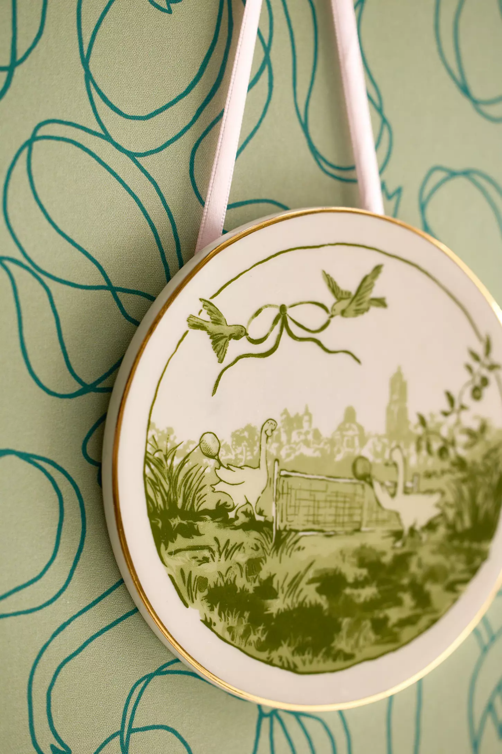 В центре внимания на тарелках - гуси, играющие в теннис и гусь прогуливающийся у веток. Это создает непринужденный стиль, а также придает атмосферу легкой романтики и винтажного шика, которая оживит спальню, гостиную, кухню или рабочий кабинет. Идеальный декоративный элемент для тех, кто любит необычные детали и художественные предметы в интерьере. Эксклюзив Орбита Home — сочетание премиального качества, стиля и игривой эстетики.