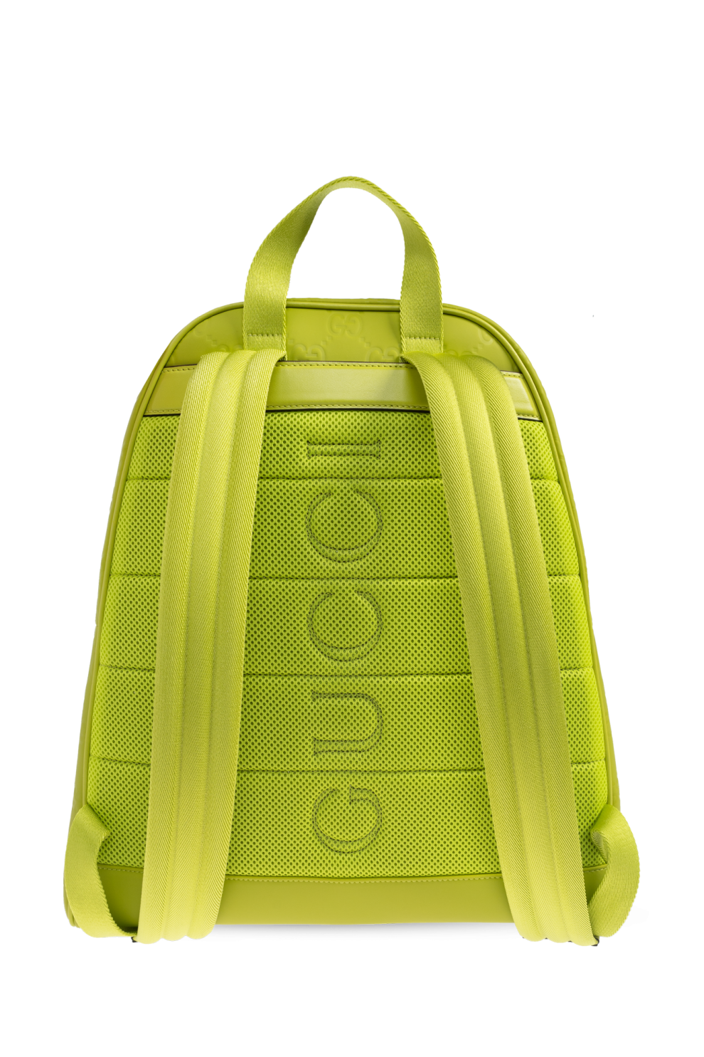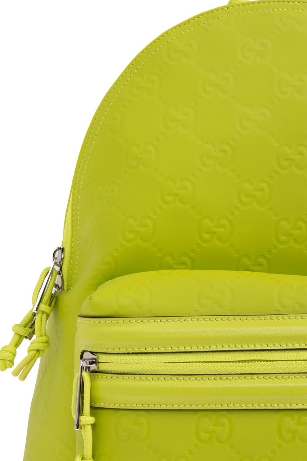 Благодаря классической округлой форме и прочному основанию эта модель идеально сочетает в себе изысканную эстетику и практичность. Изготовленный из отборной натуральной кожи, он поражает равномерной, слегка мерцающей текстурой и тонким, повторяющимся тиснением легендарного логотипа GG по всей поверхности. Удобная ручка, два широких регулируемых ремня и декоративная тисненая надпись «GUCCI» на спинке добавляют изделию неповторимый штрих и подчёркивают его престиж.