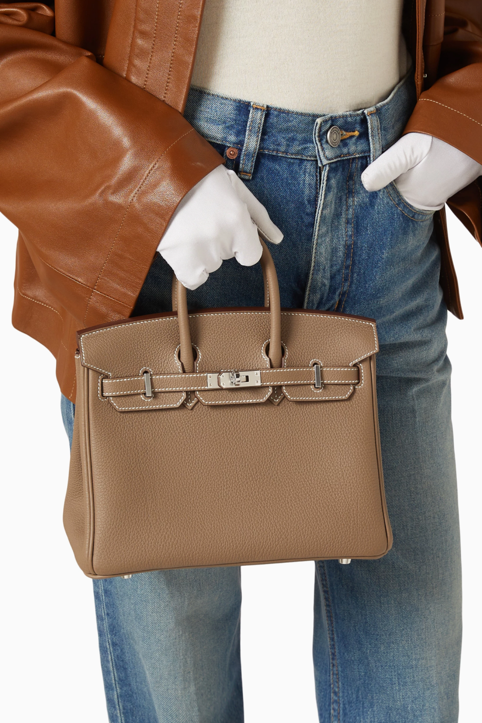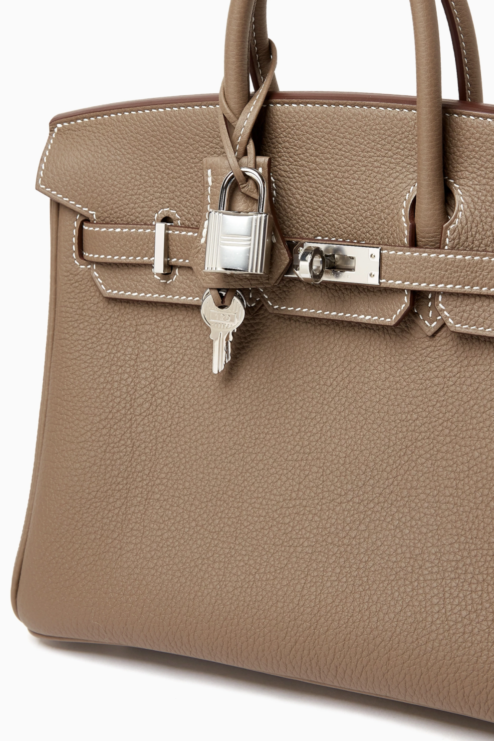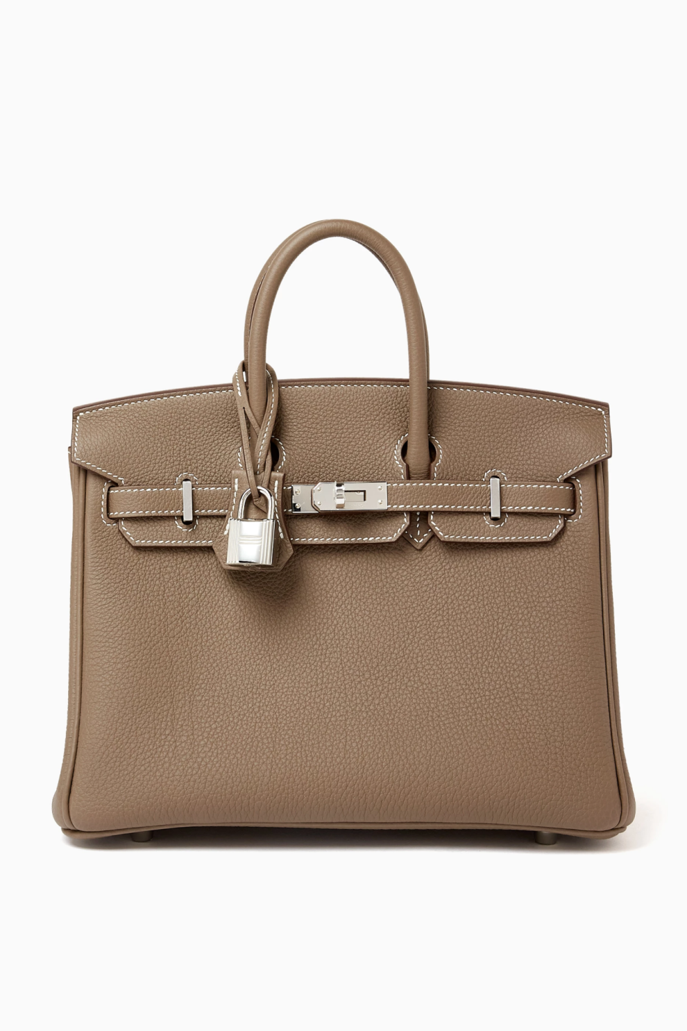 Культовая сумка Birkin 25 от Hermès представлена в одном из самых востребованных оттенков Дома — Etoupe, универсальном серо-тауповом цвете, который гармонично вписывается в гардероб вне зависимости от сезона и стиля.