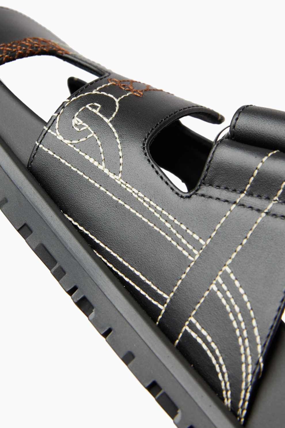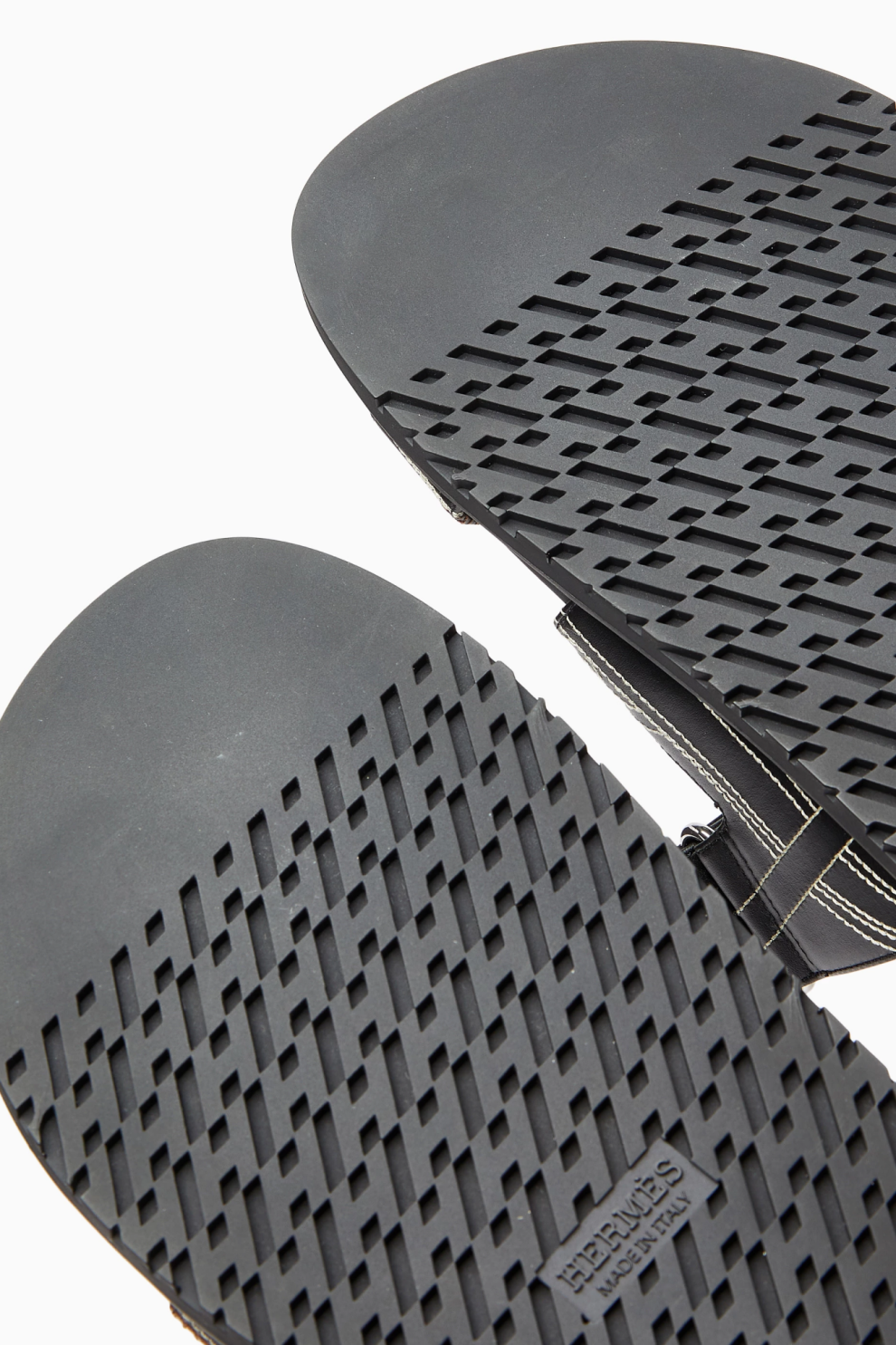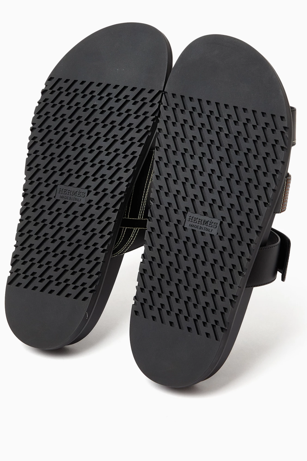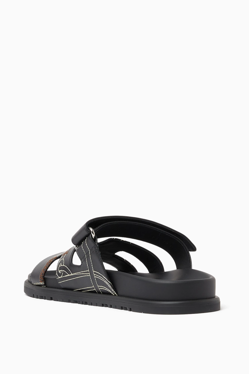 Сандалии Chypre от Hermès — один из самых желанных аксессуаров для повседневного образа круглый год. Модель выполнена из высококачественной кожи с гладким верхом классического черного цвета, украшенного вышивкой Panoplie Equestre, что добавляет образу особой выразительности.