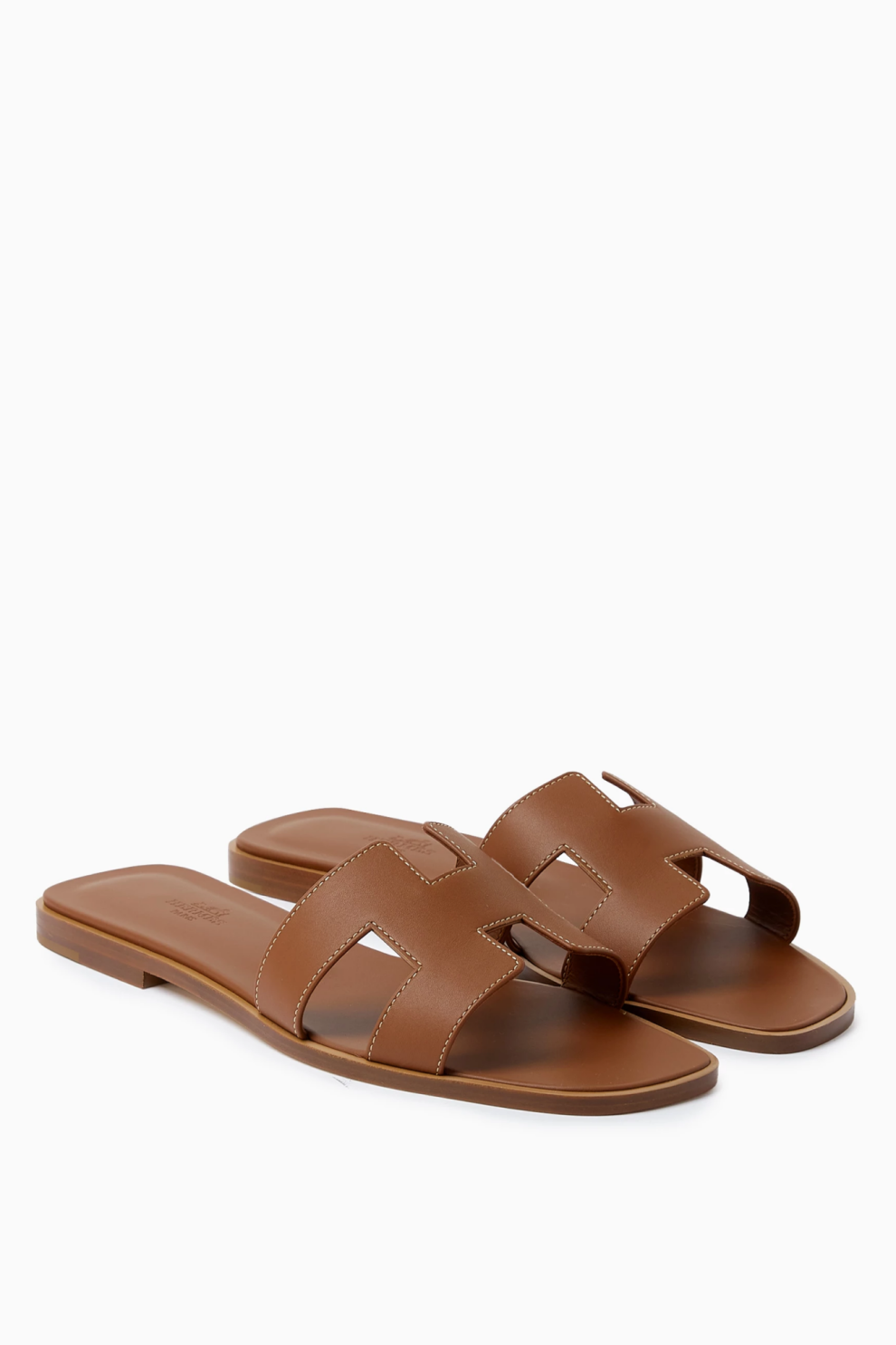 Шлепанцы Hermès Oran Calfskin Leather Gold Brown