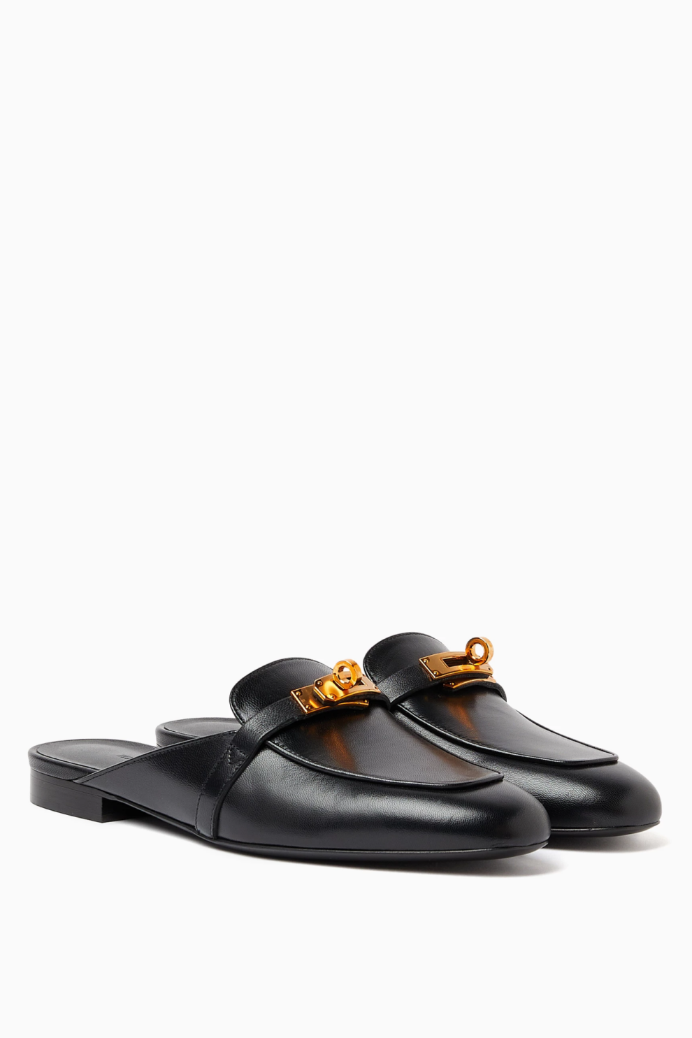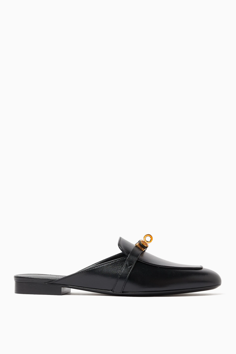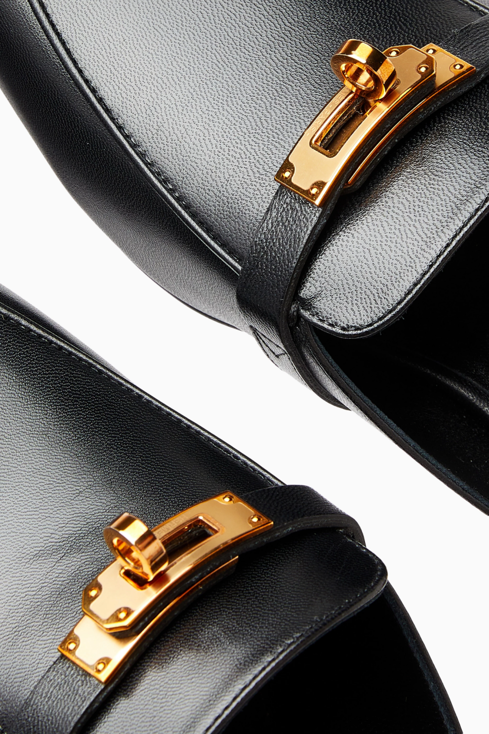 Элегантные сандалии-мюли Oz от Hermès выполнены из натуральной кожи с роскошной зернистой фактурой в классической чёрной расцветке с золотистой пряжкой, создавая изысканный, утончённый образ для повседневной носки. Отличительным акцентом данной модели является знаковая пряжка Kelly в миниатюрном варианте из золотистого металла, которая добавляет обуви характер и уникальный акцент.