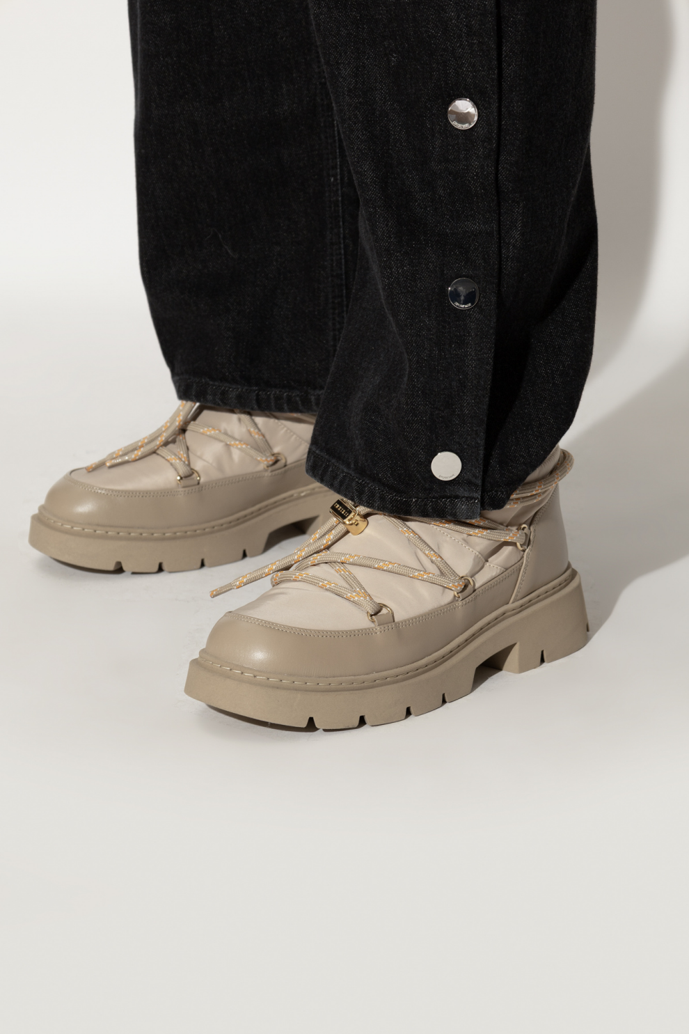 Зимние ботинки Biker Puffer от Inuikii объединяют функциональность и выразительный дизайн в актуальном городском формате. Массивный силуэт длиной до щиколотки выполнен в сдержанной бежевой гамме, придающей модели универсальность и современный характер.