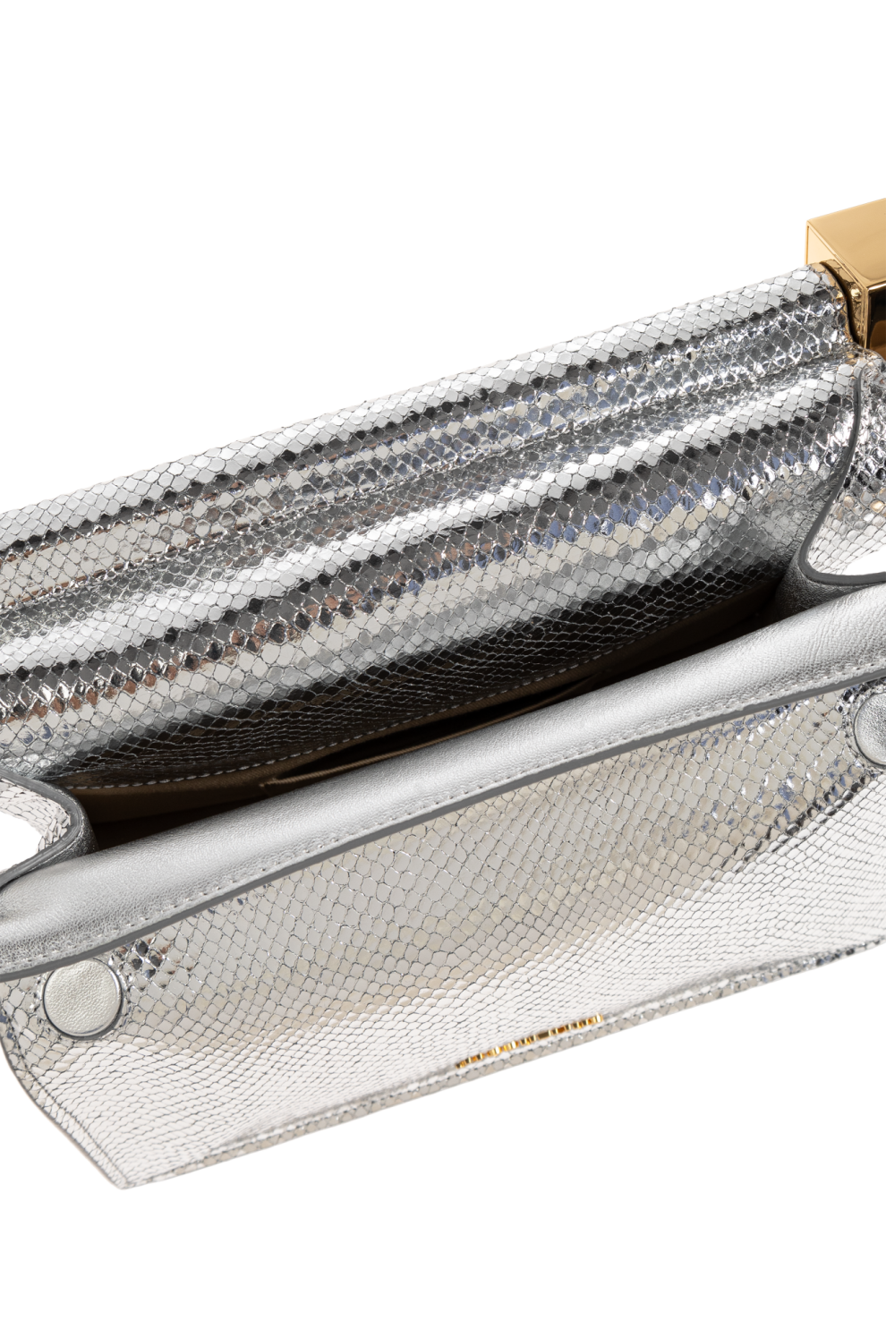 - Серебристая лакированная поверхность с имитацией змеиной кожи