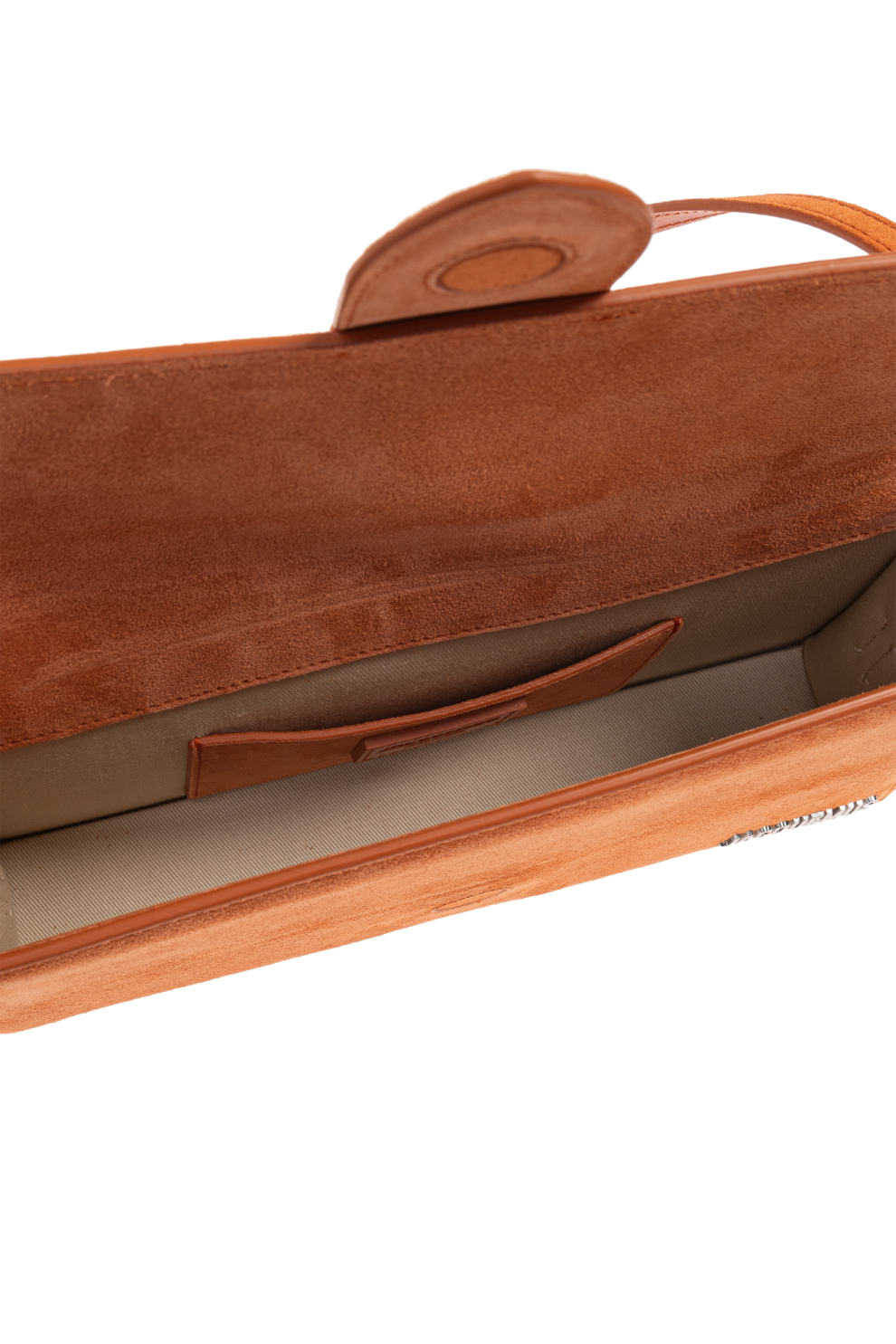 Удлинённая прямоугольная форма и чёткие, отточенные линии подчёркивают мастерство дизайнера, черпающего вдохновение на юге Франции. Внешняя часть сумки выполнена из изысканной козьей замши с нежной, изысканной текстурой. Внутренняя часть выполнена из натурального хлопка для прочности и комфорта. Вся сумка выполнена в однородном терракотово-оранжевом цвете с акцентом на неброский металлический логотип.