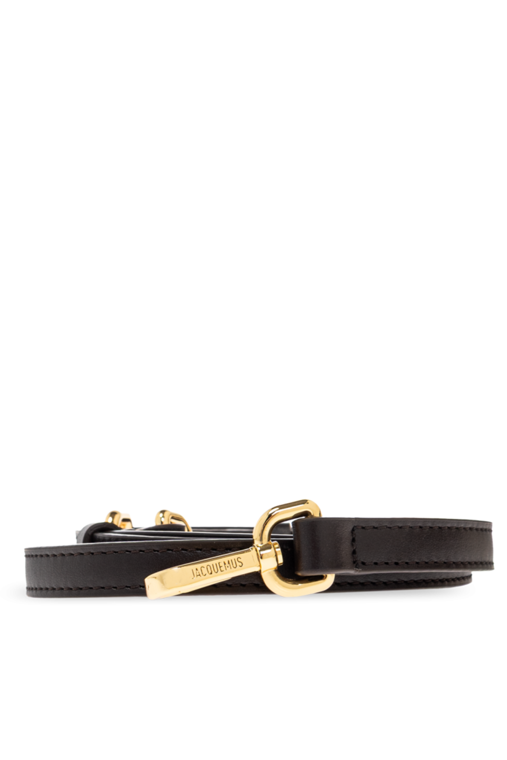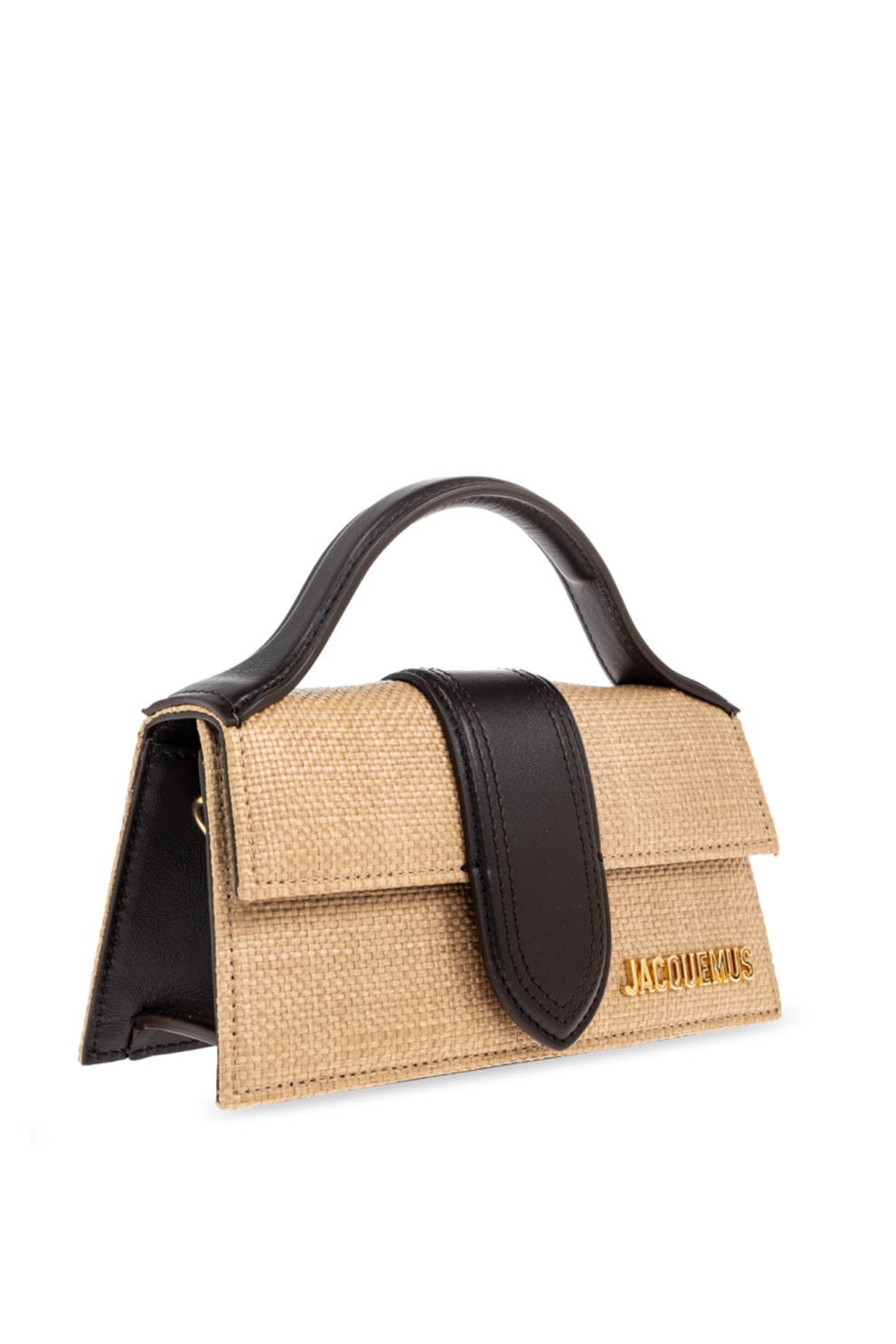 Ключевая особенность – прочная укреплённая ручка, обеспечивающая комфортную переноску, а широкий центральный ремень подчёркивает современный характер модели. Спереди изящно поблескивает позолоченный металлический логотип «JACQUEMUS», подчёркивая уникальность сумки.