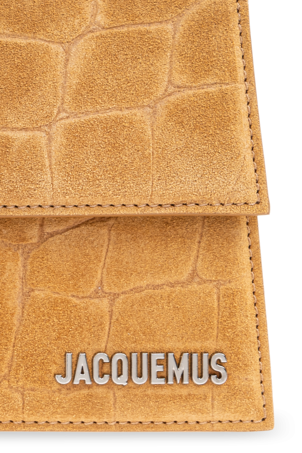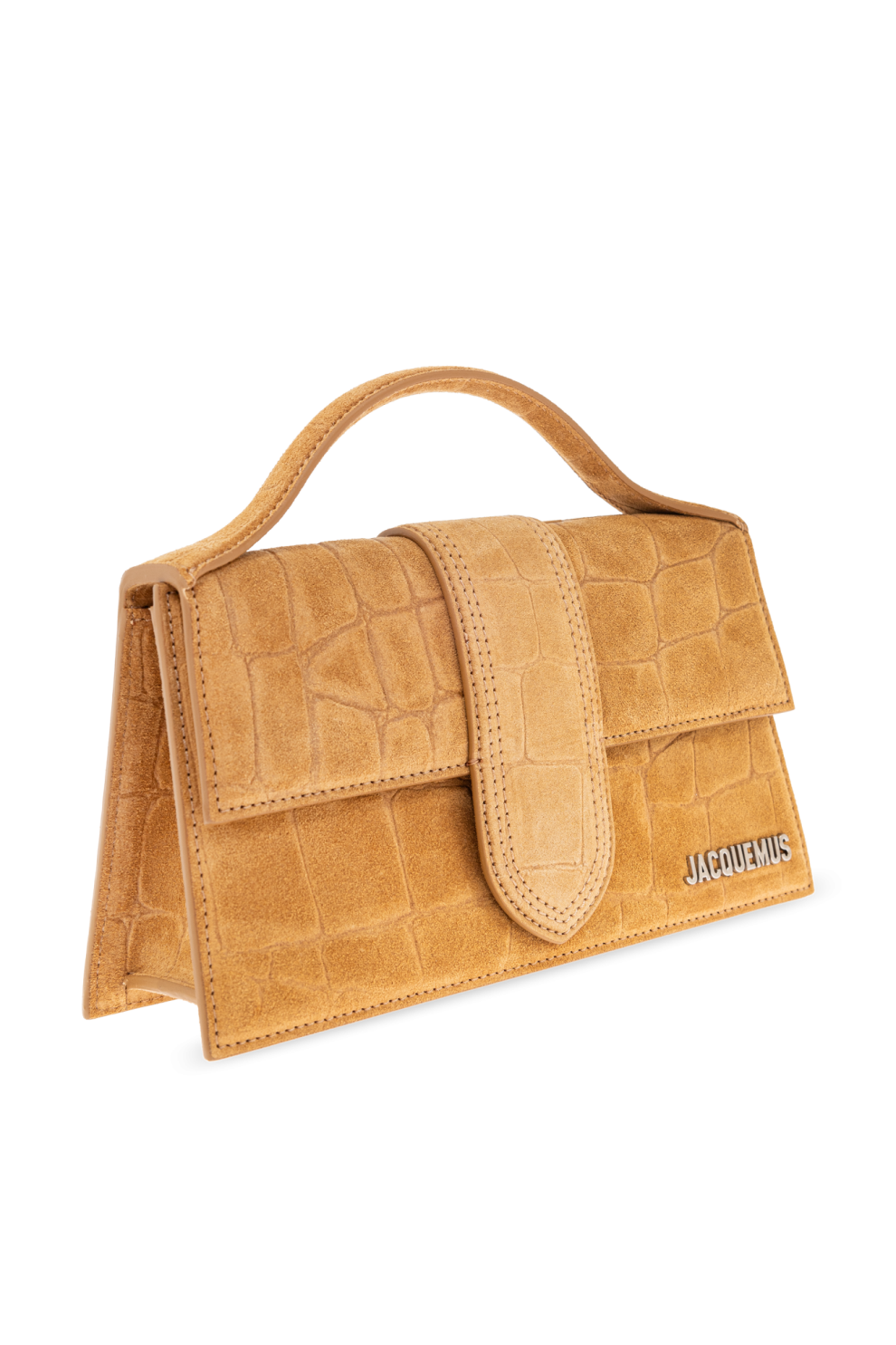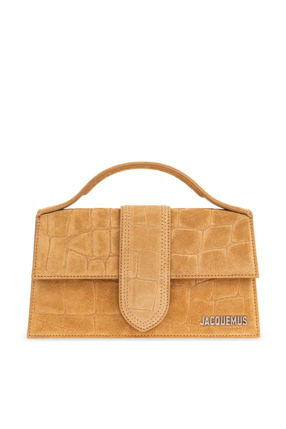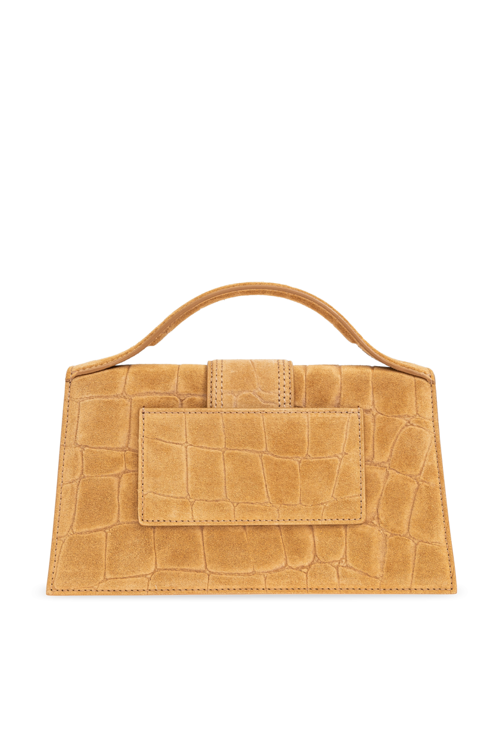 Замшевая сумка через плечо Le Grand Bambino из эксклюзивной коллекции Jacquemus - необыкновенная модель, которая сочетает в себе классическую элегантность и современный дизайн, символизируя роскошь и изысканность. Сумка узнаваемой прямоугольной формы с клапаном, изготовленная из высококачественной телячьей кожи с текстурой, напоминающей кожу крокодила. Доминирующий бежевый цвет обеспечивает универсальность и идеально подходит к любому наряду. Металлический логотип, расположенный спереди, подчеркивает престиж французского бренда. Сумка с короткой ручкой и дополнительным ремнём обеспечивает универсальность переноски. Магнитная застёжка обеспечивает комфорт и безопасность, а внутренняя часть на хлопковой подкладке скрывает дополнительные карманы для дополнительной функциональности.
