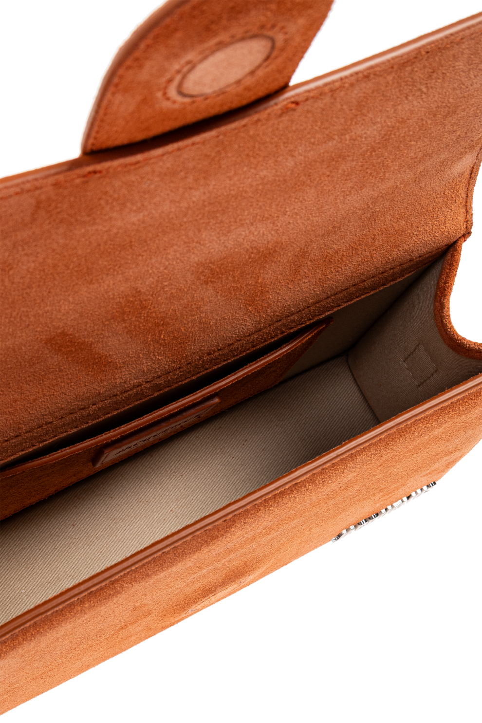 Сумка Le Grand Bambino от Jacquemus – шедевр современной элегантности. Прямоугольная, вытянутая форма с усиленной конструкцией гармонично сочетает современный стиль с утончённой классикой. Высококачественная телячья кожа с матовой замшевой отделкой пленяет своим глубоким, однородным оранжевым цветом, подчёркивая изысканность изделия.