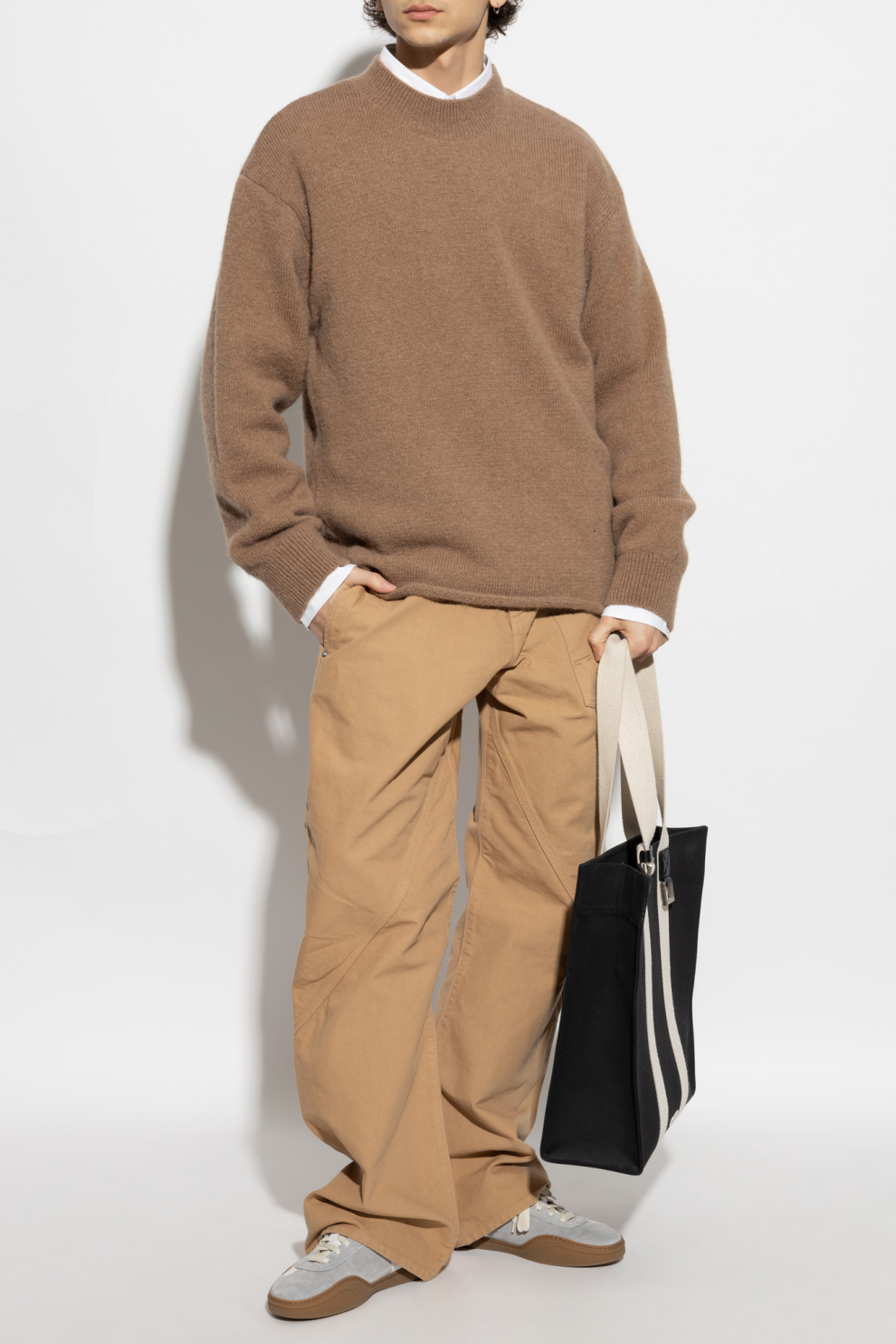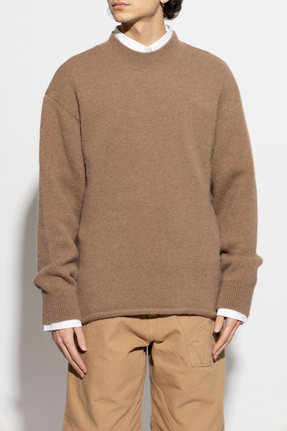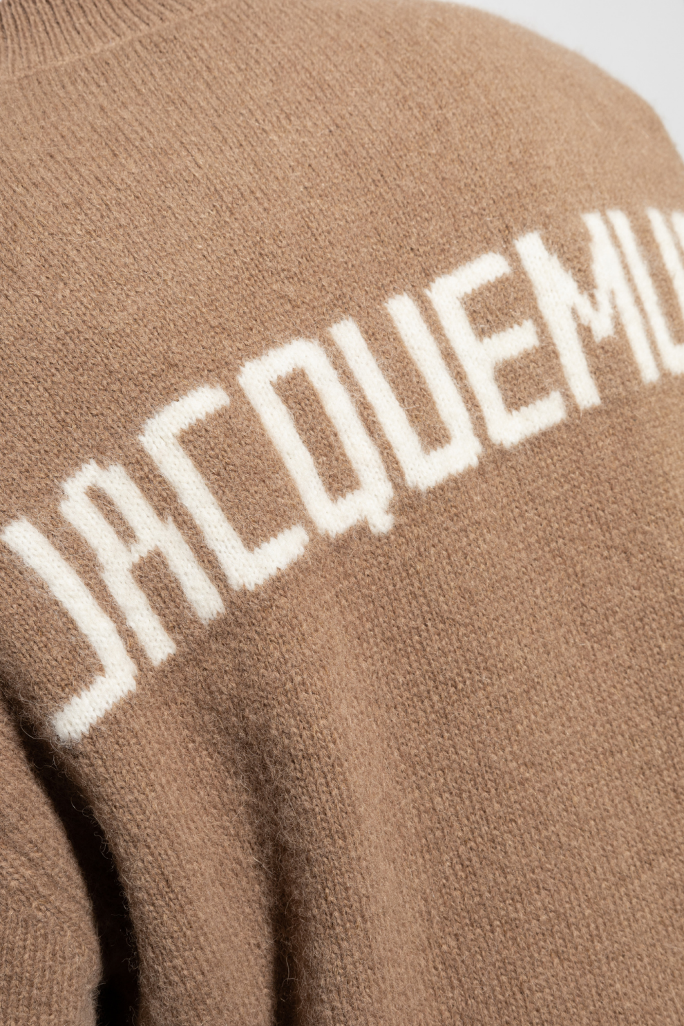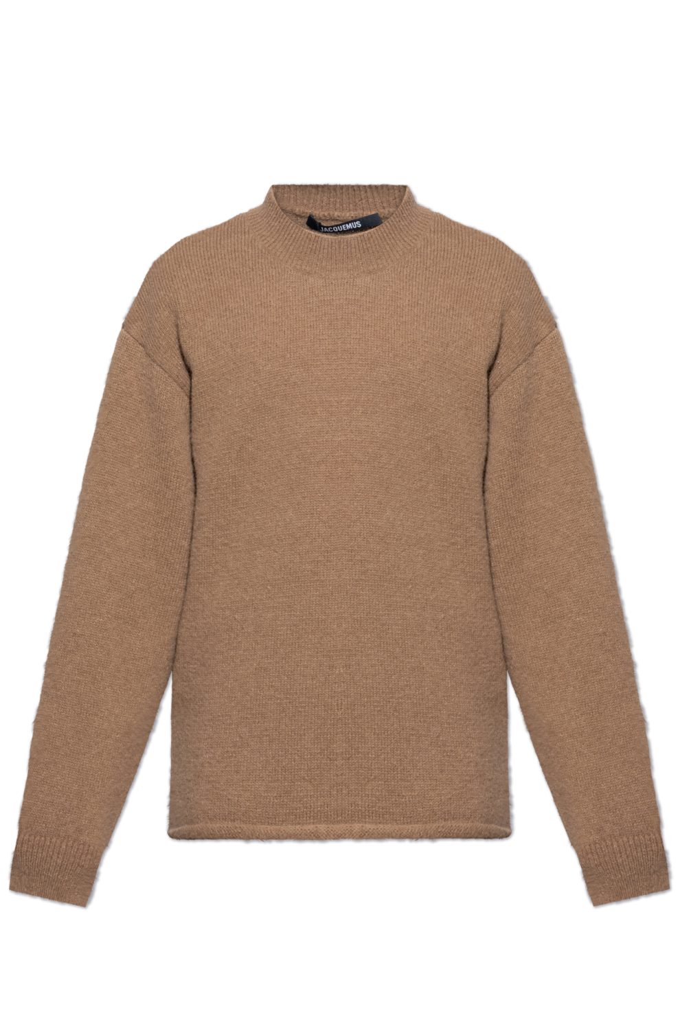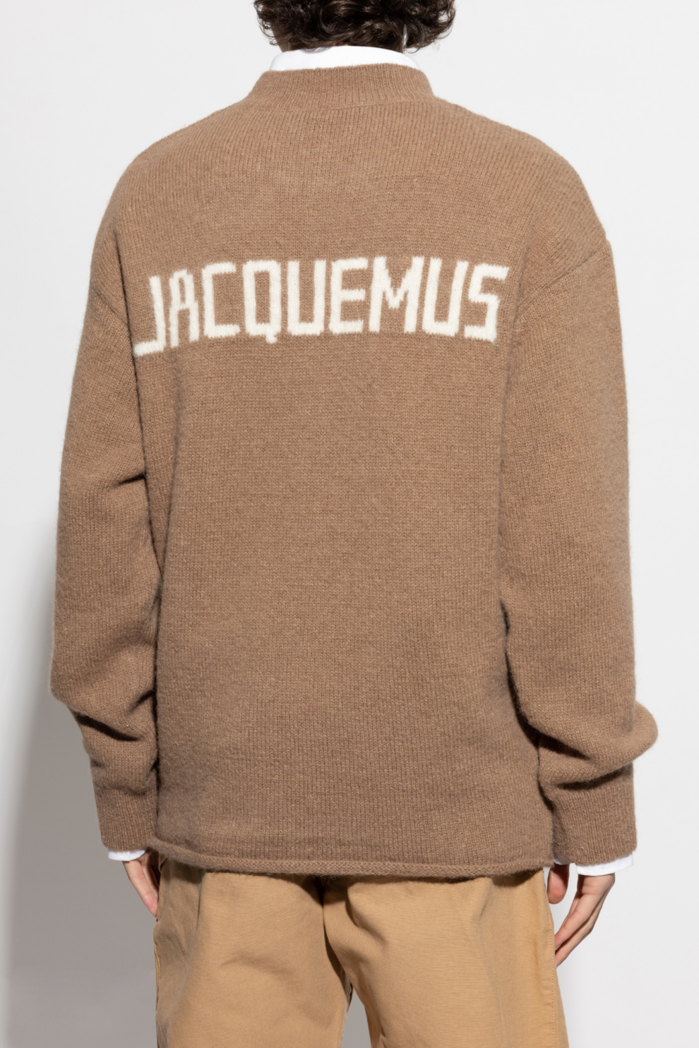 Элегантный силуэт с круглым вырезом и слегка спущенной линией плеч создаёт расслабленную, но безупречно стильную посадку. Длинные рукава и аккуратный крой подчёркивают утончённость деталей, а крупная надпись «JACQUEMUS» на спине превращает свитер в выразительный арт-объект, который одновременно чтит наследие бренда и демонстрирует современное модное видение.