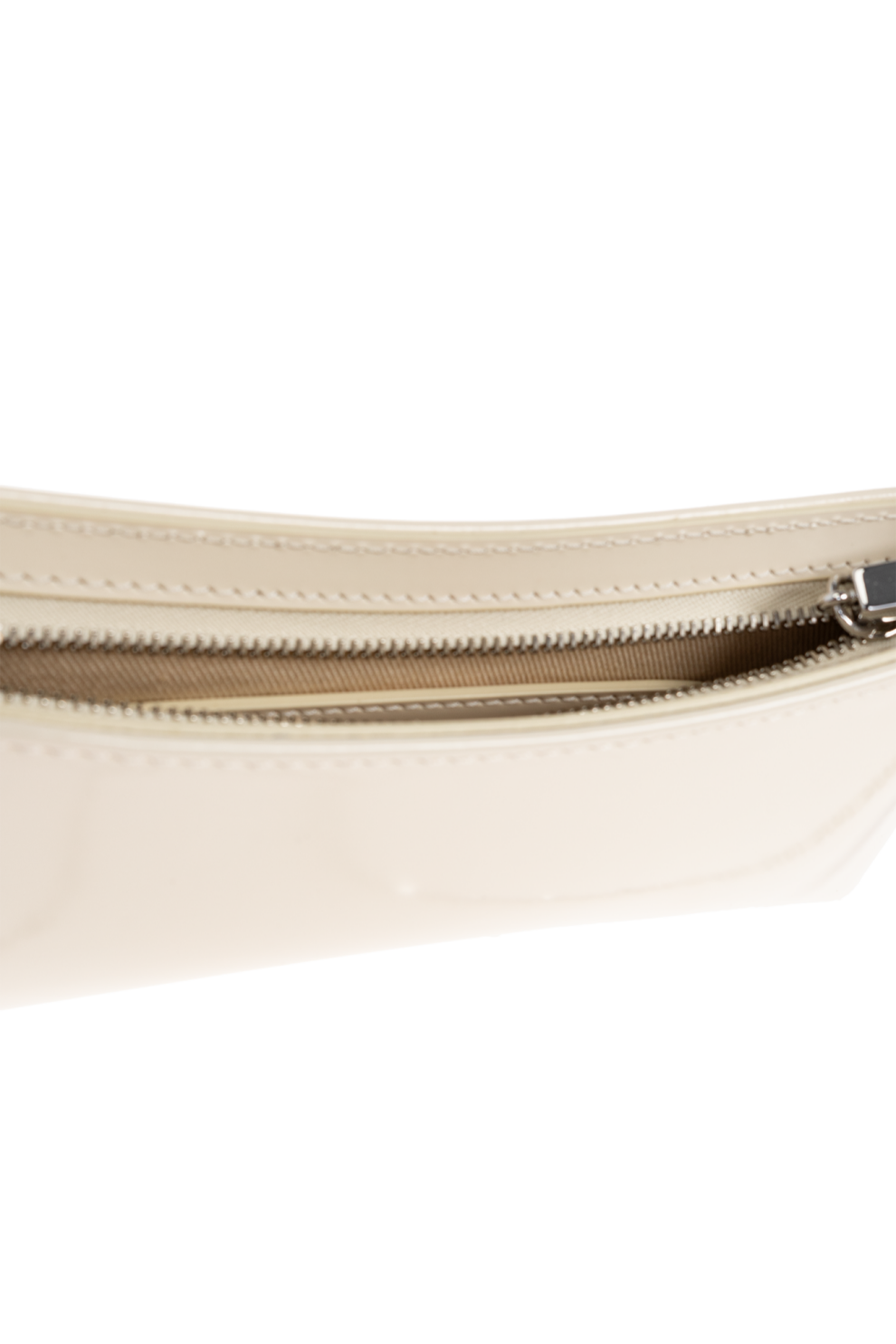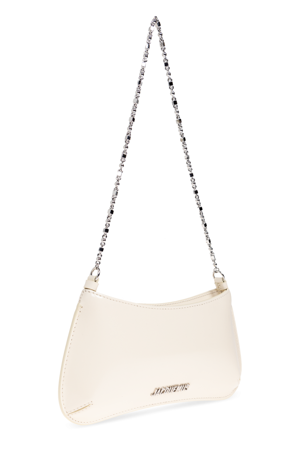Изготовленная из лакированной телячьей кожи однородного кремового цвета, эта сумка обладает тонким зеркальным блеском, подчеркивающим ее эксклюзивный характер. Изящный серебряный ремешок-цепочка добавляет легкости и модной утонченности.