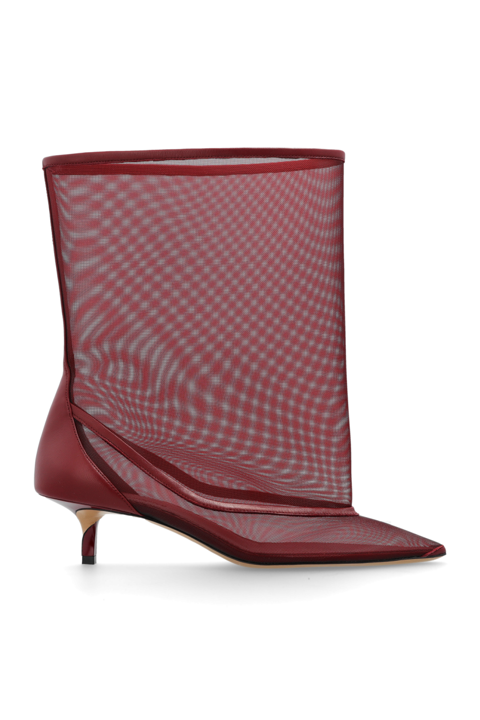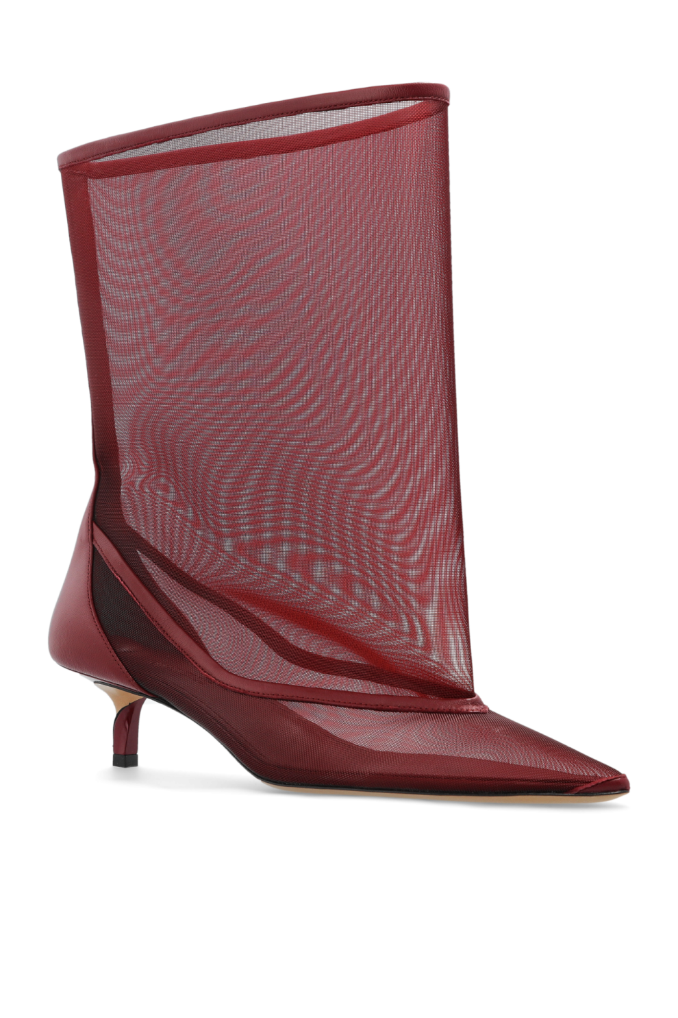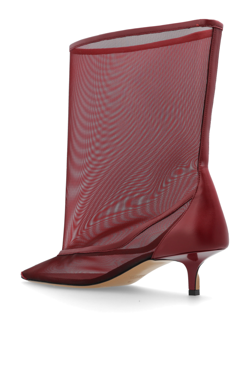 Полупрозрачные бордовые ботильоны Tourni на каблуке от Jacquemus — воплощение французской чувственности и архитектурной точности.