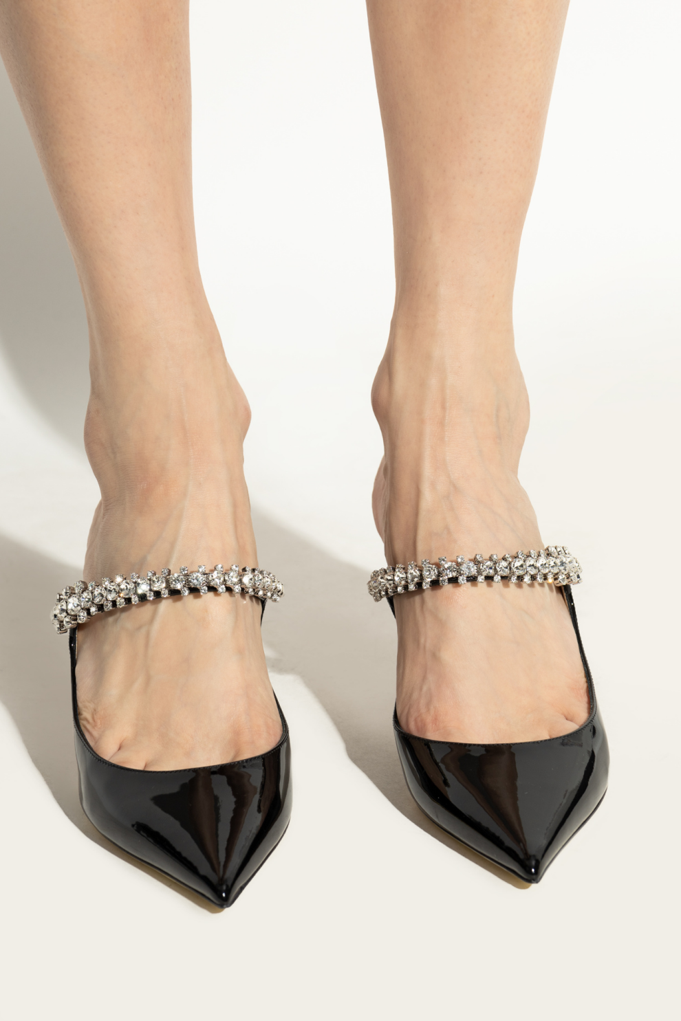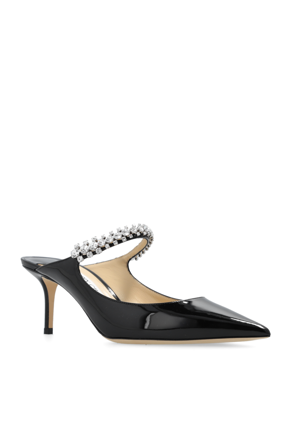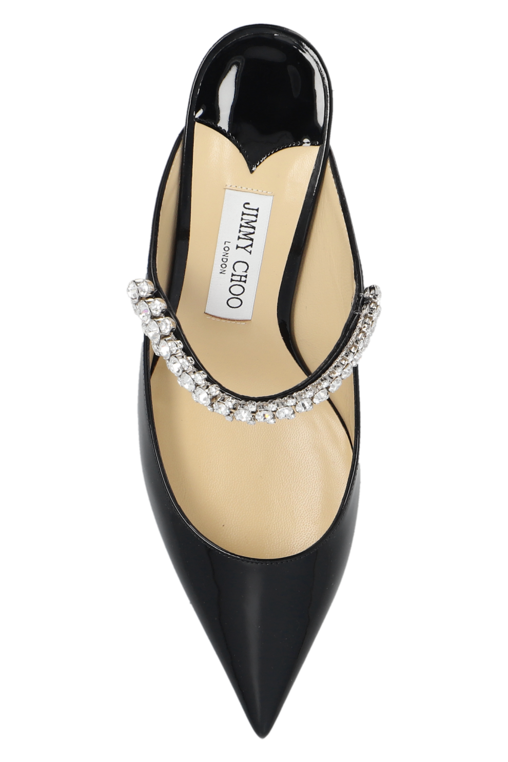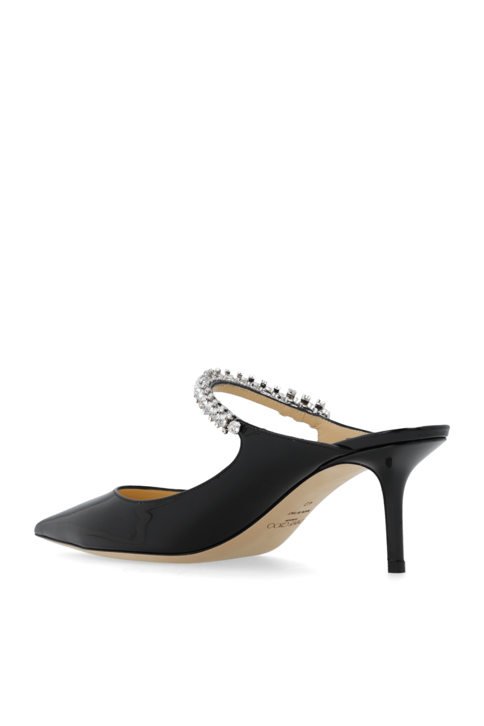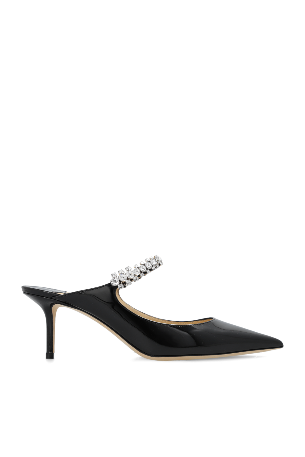 Элегантные мюли Jimmy Choo Bing в классическом чёрном цвете — воплощение современного гламура и утончённой женственности. Выполненные из гладкой лакированной кожи с зеркальным блеском, они мгновенно выделяются роскошной текстурой и идеальной архитектурой силуэта.