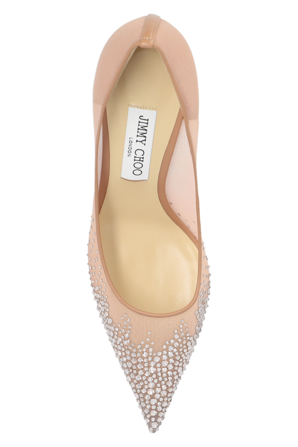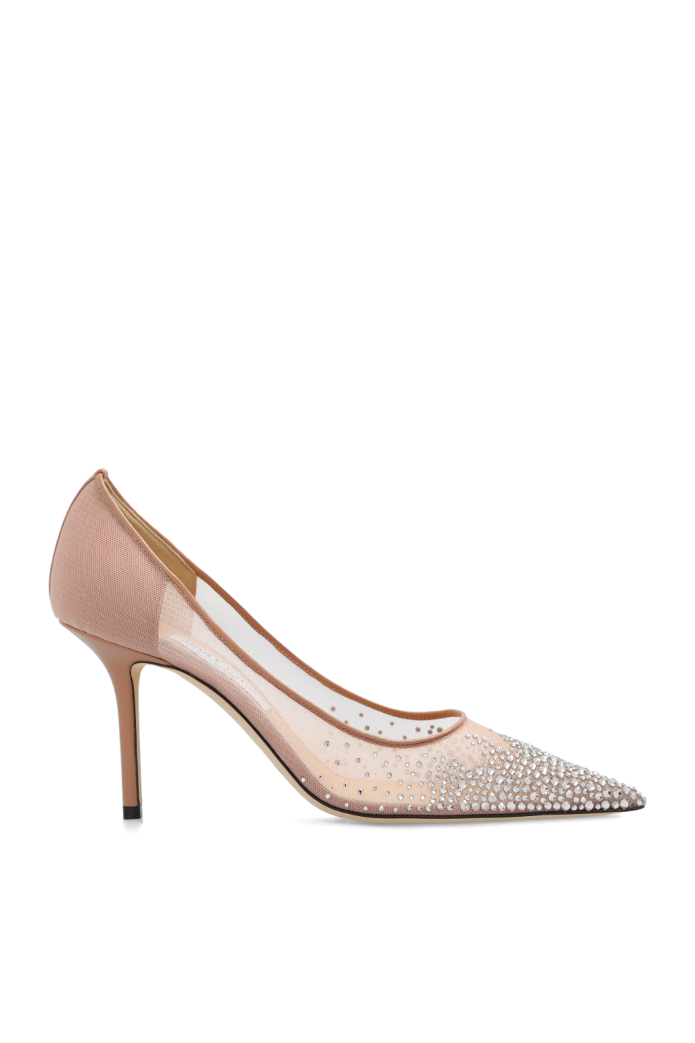Иконичная модель Jimmy Choo Love представлена в утончённом нежно-розовом оттенке и выполнена из полупрозрачной сетки, дополненной изысканной кожаной отделкой. Лёгкая фактура материала создаёт невесомый, почти ювелирный силуэт, а мерцающие аппликации на мысе добавляют обуви сияние и подчёркивают характерный гламур Дома Jimmy Choo.