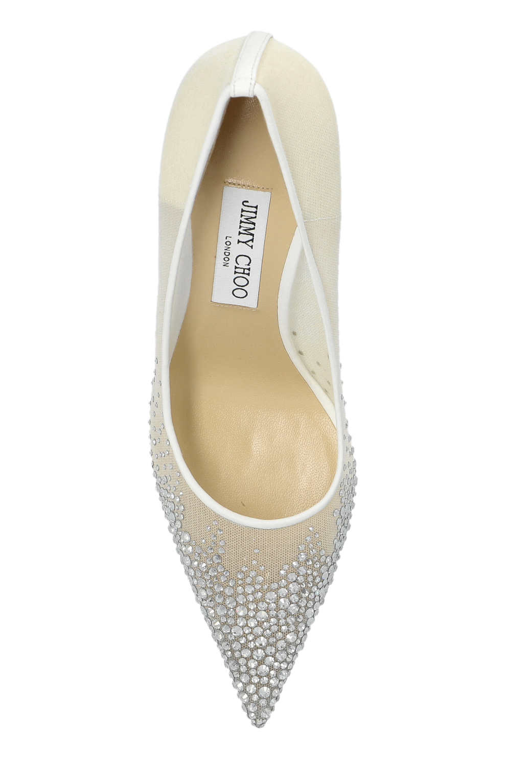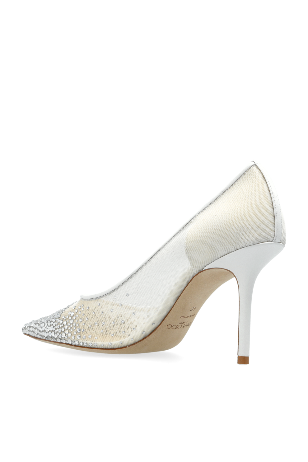 Туфли на каблуке Love от знаменитого бренда Jimmy Choo - это уникальное произведение обувного искусства сочетает в себе классический стиль и современный дизайн. Острый носок и изящная форма идеально подчёркивают силуэт стопы. Выполнены из прозрачной сетки, украшенной сверкающими кристаллами, которые излучают элегантность и лёгкость.