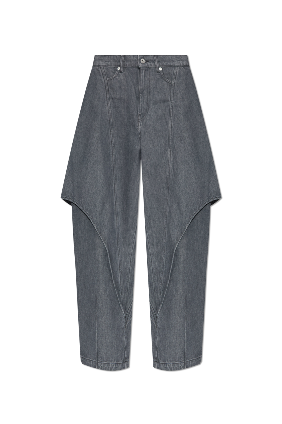 Эти джинсы с логотипом от известного дизайнера JW Anderson — яркое воплощение современной эстетики. Выполненные в изысканном, однотонном сером цвете, они очаровывают своим интригующим кроем в стиле «бойфренд» , отличающимся явно свободным силуэтом и широкими, зауженными штанинами. Плотный, структурированный деним , изготовленный из высококачественного хлопка, подчеркивает смелую архитектуру дизайна, а жесткость материала придает брюкам неповторимый характер.
