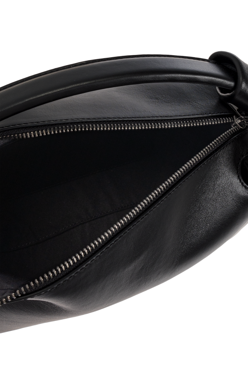 Сумка изготовлена из высококачественной, гладкой и матовой кожи глубокого черного оттенка. Минималистичный вид модели подчеркивается едва заметным тисненым логотипом дизайнера, расположенным по центру передней части. Короткая регулируемая ручка, украшенная видимой строчкой и серебряной заклепкой, закреплена прочной, современной, похожей на драгоценный камень фурнитурой, что придает сумке неповторимый характер.