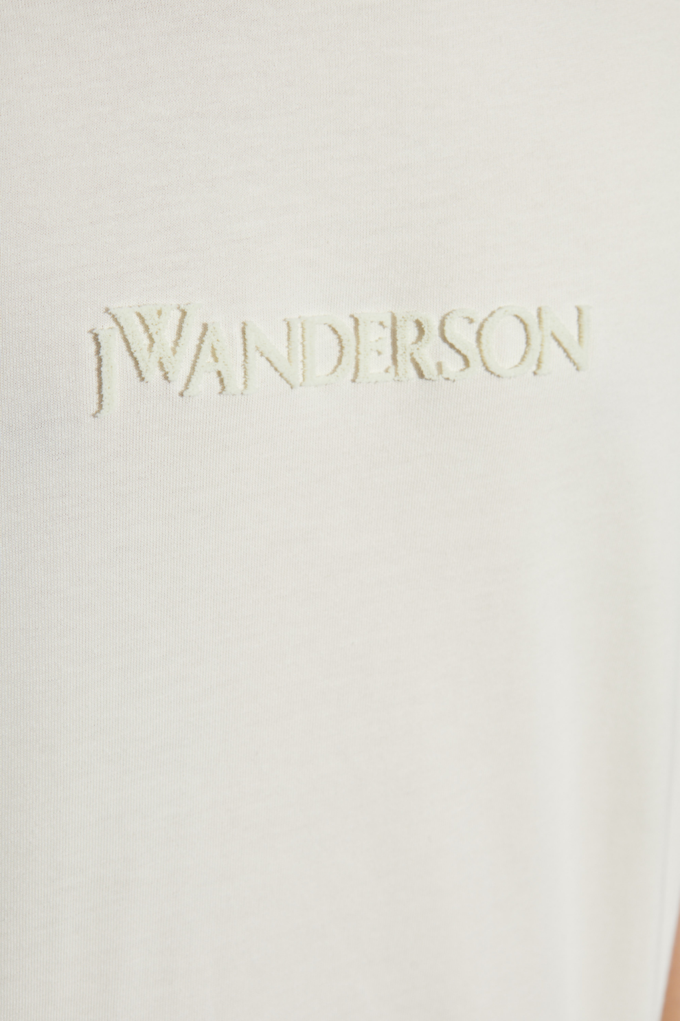 Роскошный акцент — вышитый логотип «JW ANDERSON» на груди, что подчеркивает изысканный стиль дизайна. Простая линия подола рукавов, низ и вырез горловины отражают минималистичный подход, лишенный лишних украшений. Это предложение для тех, кто ценит качество, тщательное мастерство и уникальное прочтение современности.