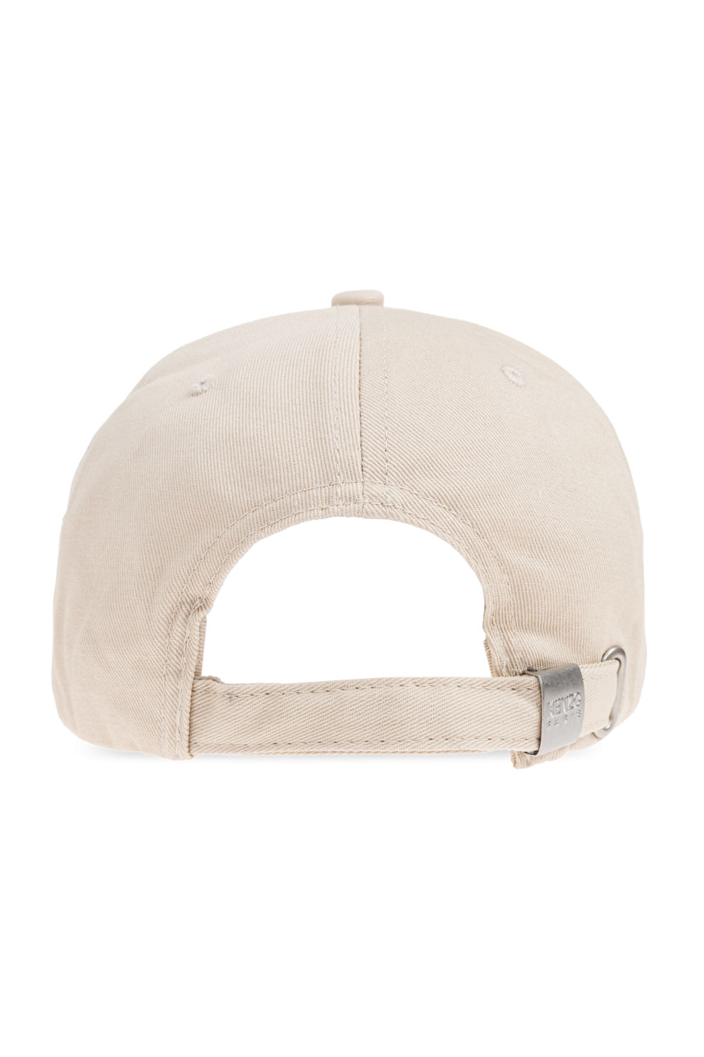 Гармонично закруглённый дизайн из шести панелей со слегка утолщённой передней частью привлекает внимание однотонным кремовым цветом, который разбавляется эффектной контрастной нашивкой с логотипом дизайнера насыщенного красного цвета и изящной вышивкой на козырьке. Тщательно проработанные детали, такие как регулируемый подол сзади, подчёркивают функциональность и индивидуальность аксессуара.