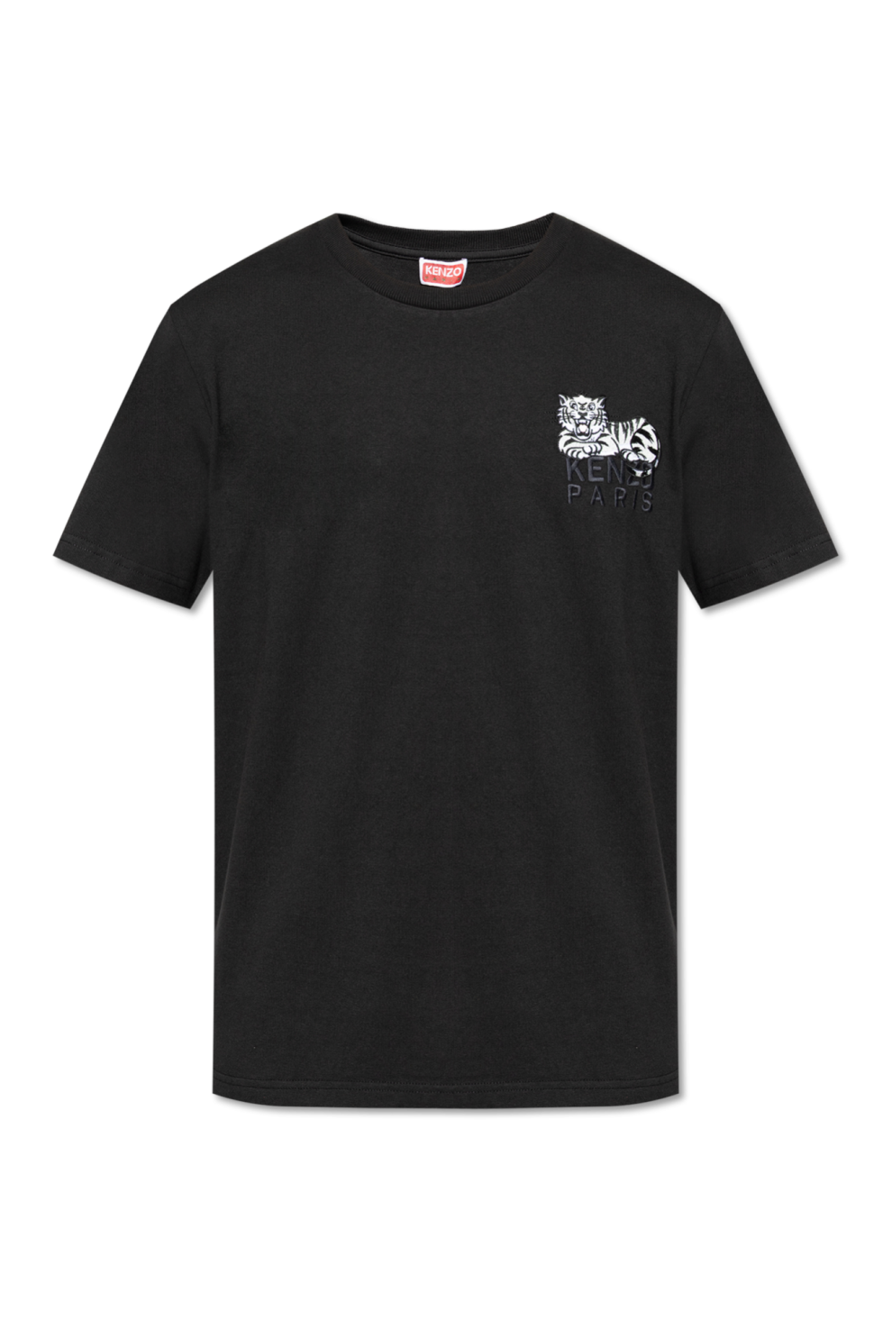 Эта футболка изготовлена из натурального высококачественного хлопка, обеспечивающего исключительный комфорт и бархатистую мягкость. Глубокий чёрный цвет ткани идеально подходит для аккуратно вышитого логотипа Kenzo на левой стороне груди. Изысканное сочетание белого, серого и чёрного цветов подчеркивает культовое изображение тигра и надпись «KENZO PARIS», подчёркивая эксклюзивность дизайна.