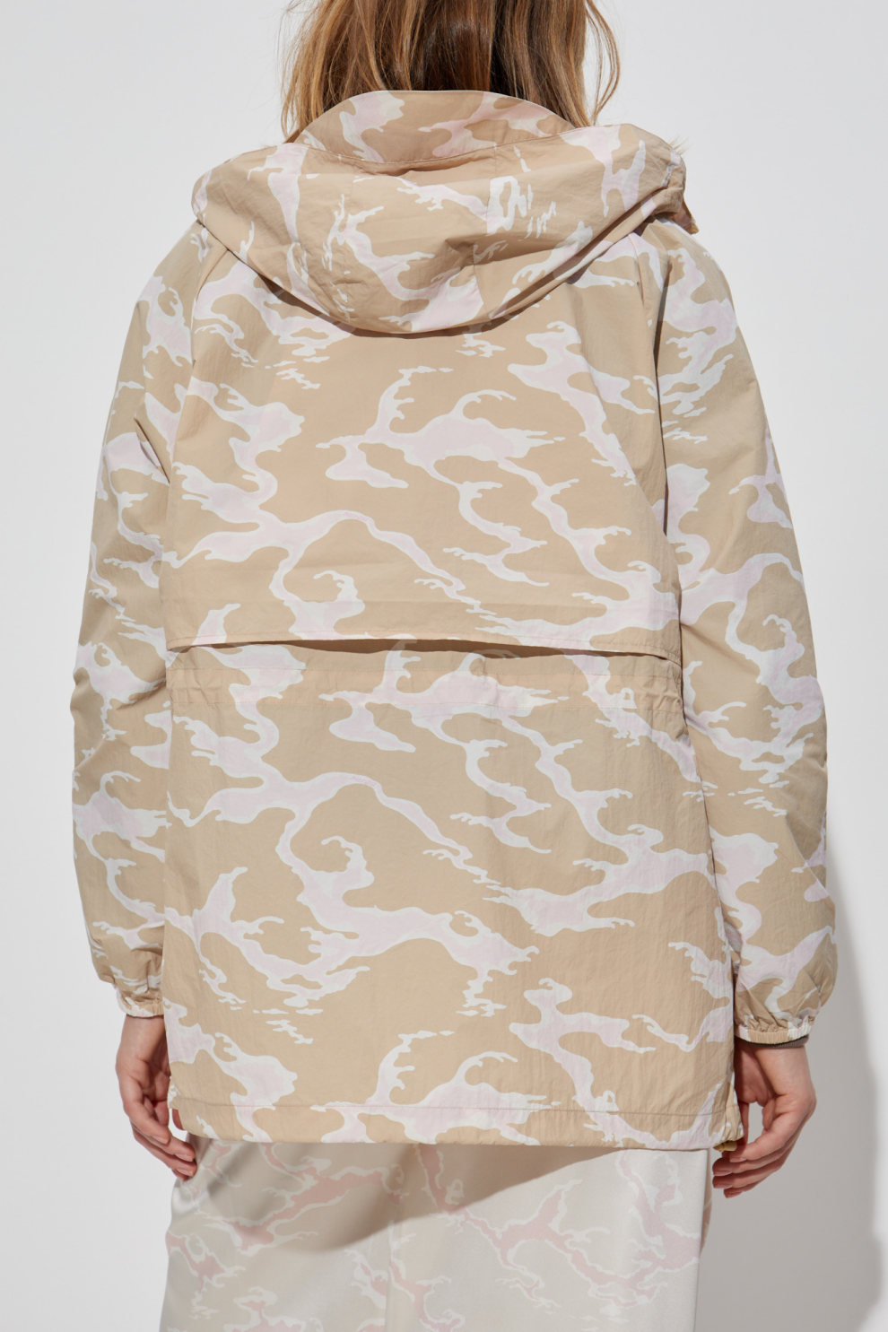 Оригинальный рисунок в бежево-белых тонах придаёт куртке интригующий, почти художественный характер, добавляя неповторимый штрих к любому образу. Куртка изготовлена из высококачественного нейлона, лёгкая, ветро- и влагоустойчивая, что в сочетании с быстросохнущей текстурой материала делает её практичной.