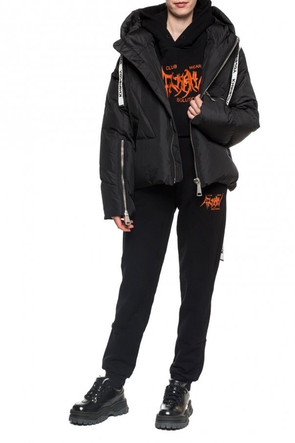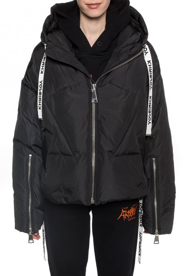 Фирменный дизайн Khrisjoy подчёркивают декоративные молнии на рукавах и характерные завязки с вышитым логотипом на капюшоне и подоле, позволяющие легко регулировать посадку и придающие образу неповторимый акцент. Два объёмных накладных кармана не только удобны для хранения мелочей, но и согреют руки в прохладную погоду.