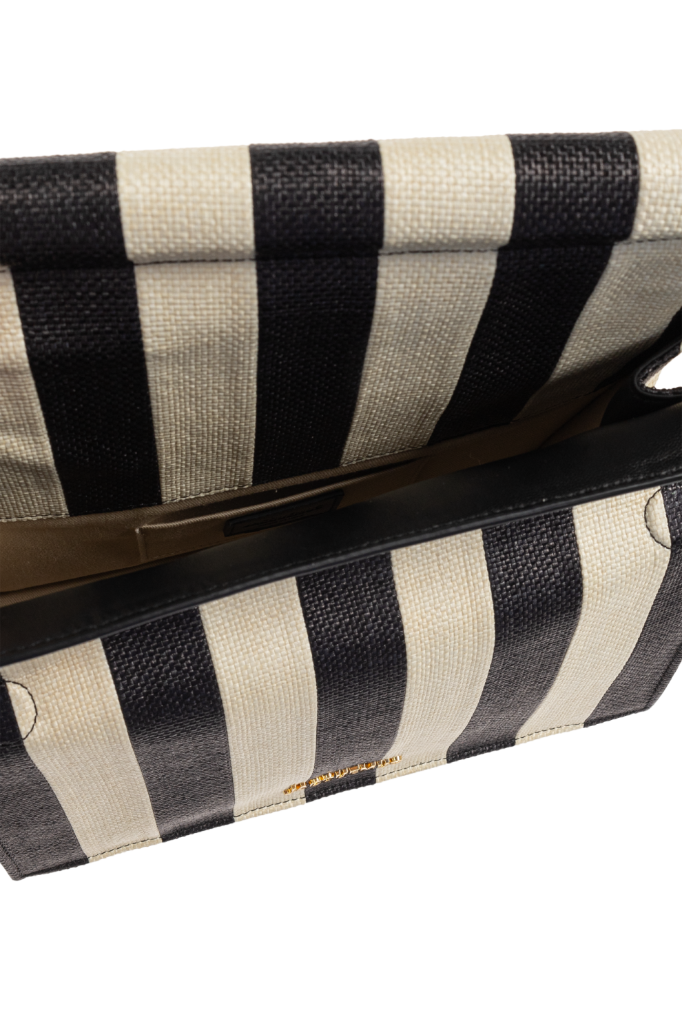 Графичные широкие вертикальные полосы черного и светло-бежевого цветов создают эффектный визуальный контраст, который делает сумку по-настоящему знаковой. Верх выполнен из прочного холста с отделкой из кожи и полиамида, а внутри — мягкая хлопковая подкладка, обеспечивающая практичность и комфорт.