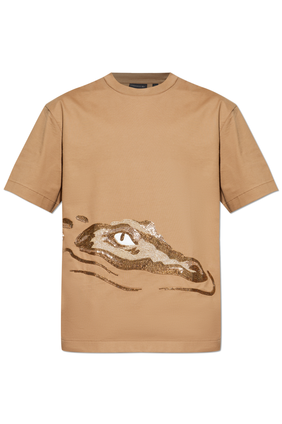 Футболка Lacoste с эксклюзивной бисерной аппликацией – синоним изысканной элегантности и уникальной эстетики. Изготовленная из мягкого хлопка премиум-класса, она впечатляет комфортом и прочностью. Бежево-коричневые оттенки излучают благородство и вневременную элегантность, подчёркивая изысканный характер изделия.