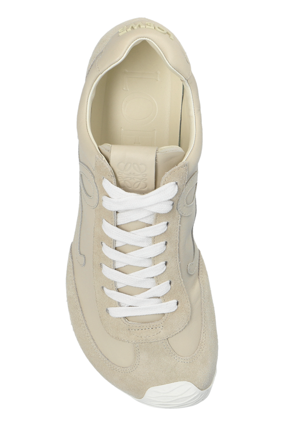 Классические белые шнурки гармонично дополняют общий образ, а лаконичная надпись LOEWE на пятке завершает композицию, подчеркивая фирменную идентичность.