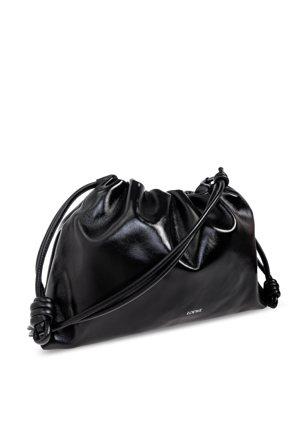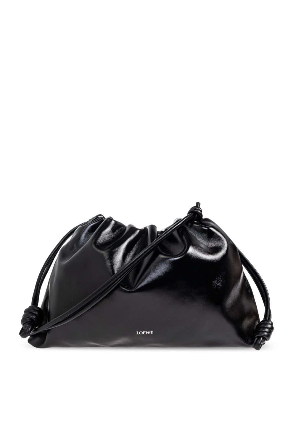 Фирменные боковые шнурки с кожаными узлами — культовая деталь линии Flamenco — добавляют архитектурной выразительности и позволяют варьировать форму сумки. Контрастный логотип Loewe деликатно подчёркивает принадлежность к миру высокой моды, сохраняя при этом сдержанный, интеллектуальный характер дизайна.