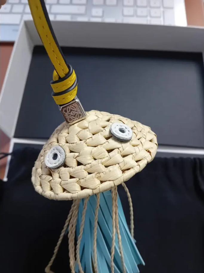 Длинный брелок в виде медузы от Loewe из коллекции Paula's Ibiza изготовлен из полированной телячьей кожи, в котором узелковый штрих и логотип на металлической бусине подчеркивают игривый шарм. Главным акцентом в этом произведении искусства служит дизайн медузы, выполненный из рафии. Он станет прекрасным дополнением к вашей связке ключей, любимой сумочке или в качестве декоративного элемента на рюкзак или ремень, или же на ваших джинсах. Вариативность применения ограничивается только фантазией!