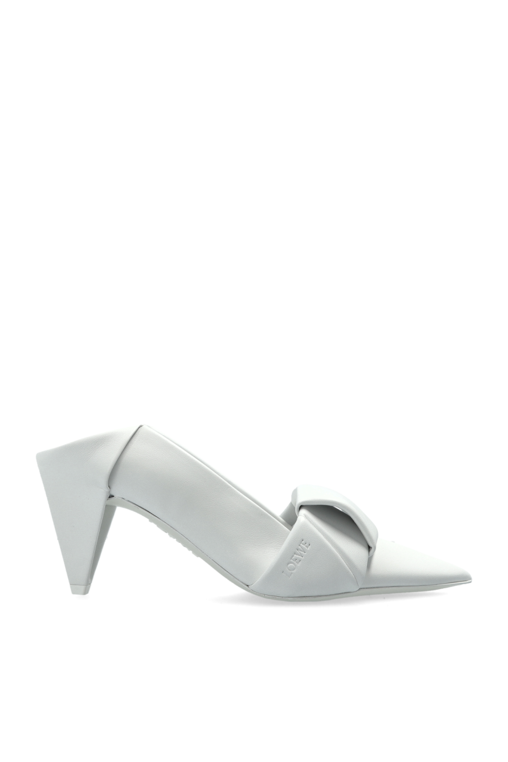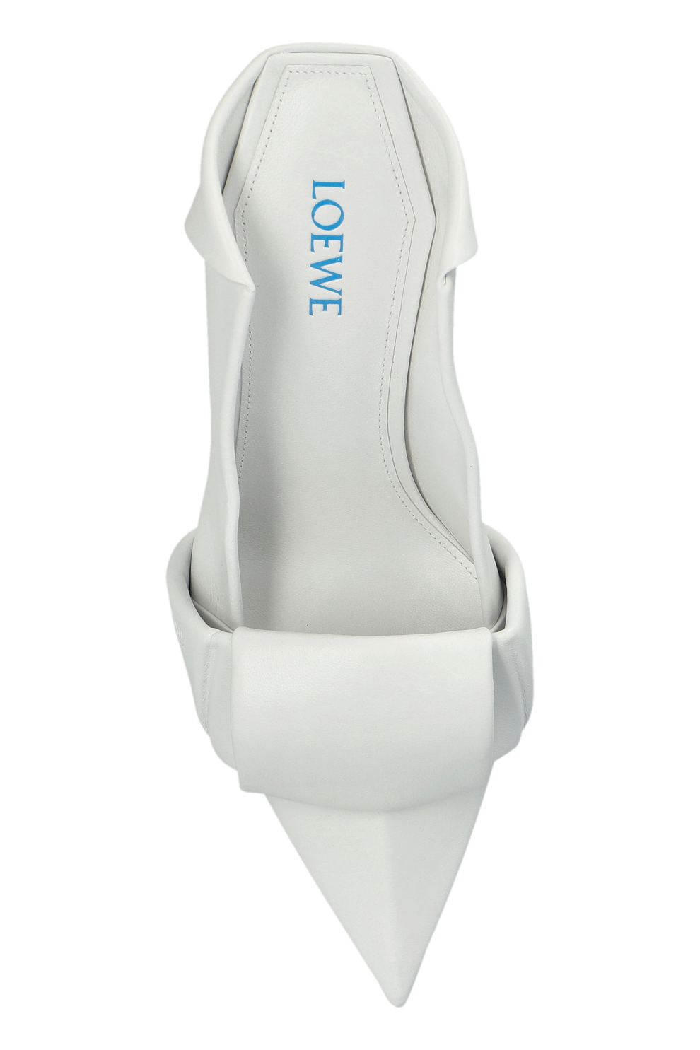 Широкий, слегка конический каблук обеспечивает устойчивость и комфорт при носке, гармонично дополняя скульптурный характер модели. Внутри изделие украшено контрастным логотипом LOEWE в нежно-голубом оттенке — деликатный, но выразительный знак принадлежности к культовому модному дому.