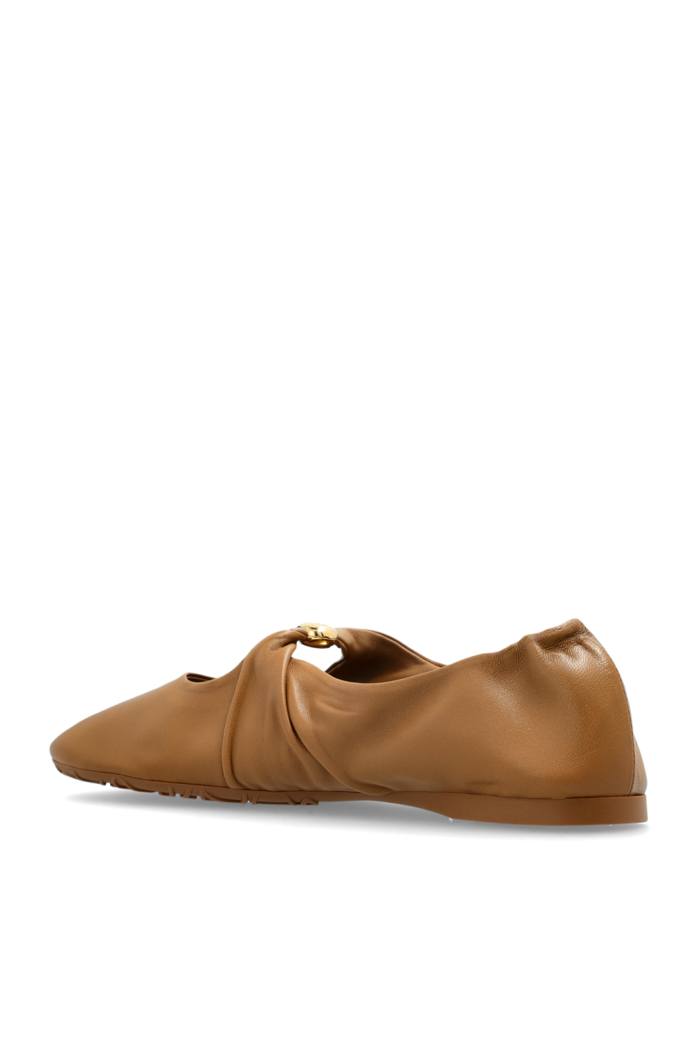 Балетки Loewe Pebble в оттенке Oak от Loewe — это утончённое воплощение современной женственности, в котором минимализм встречается с характерной скульптурной эстетикой бренда. Модель переосмысляет классическую балетную форму, делая акцент на мягкости линий, архитектурной точности и исключительном комфорте.