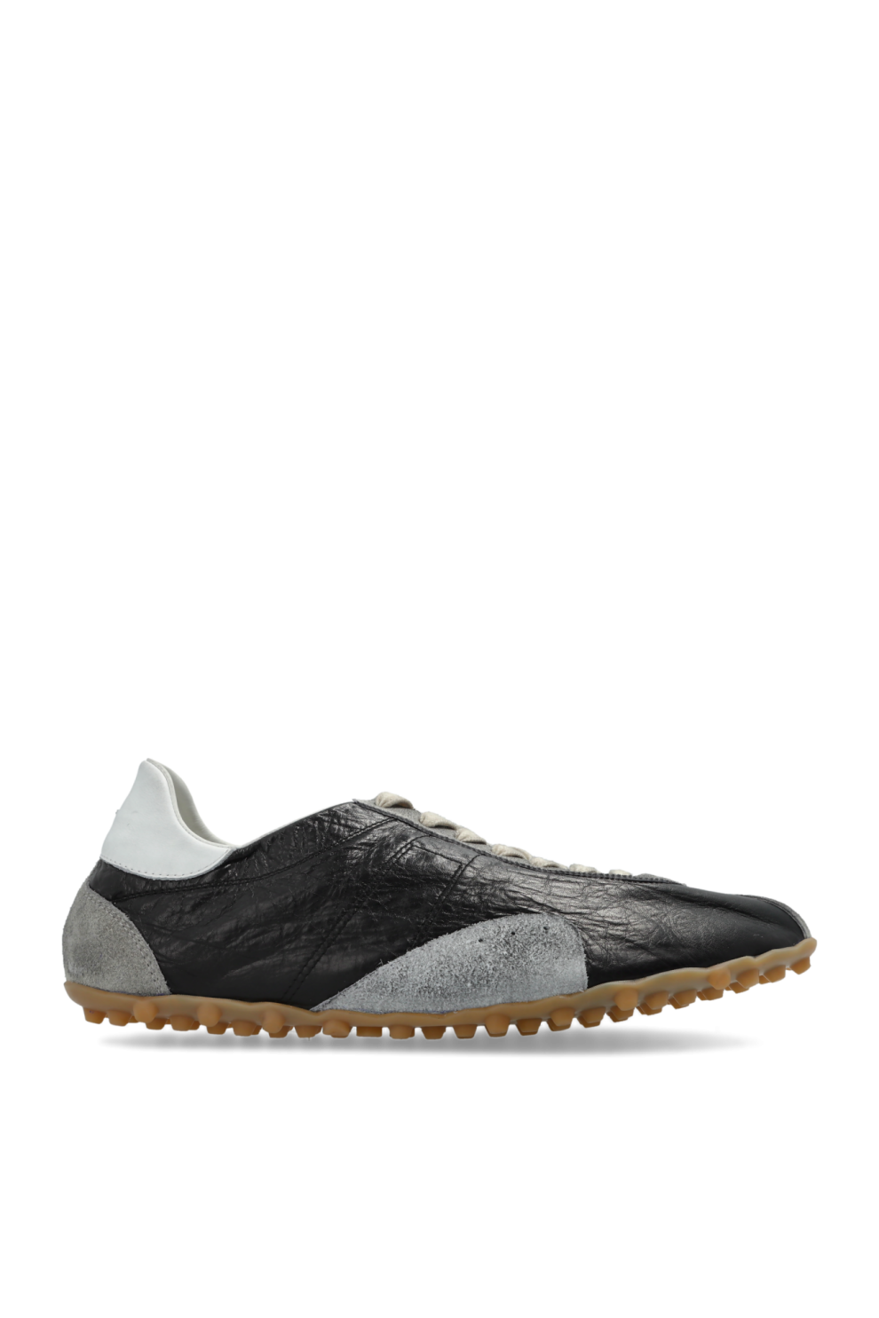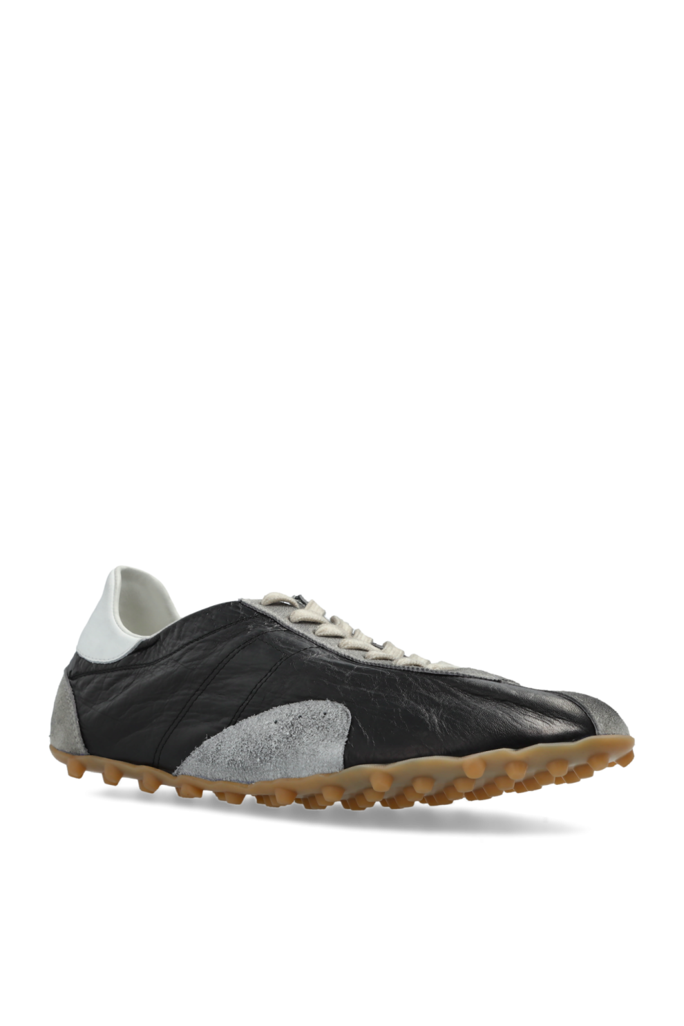 Эти кроссовки Sprinter от Maison Margiela — воплощение элегантности в духе современного минимализма. Классический дизайн низких кроссовок отличается изящным, удлиненным силуэтом, вдохновленным вневременным ретро-стилем. Гладкий черный верх из натуральной кожи, деликатно дополненный мягкими светло-серыми замшевыми вставками на носке, боках и пятке, очаровывает изысканным сочетанием текстур и оттенков.