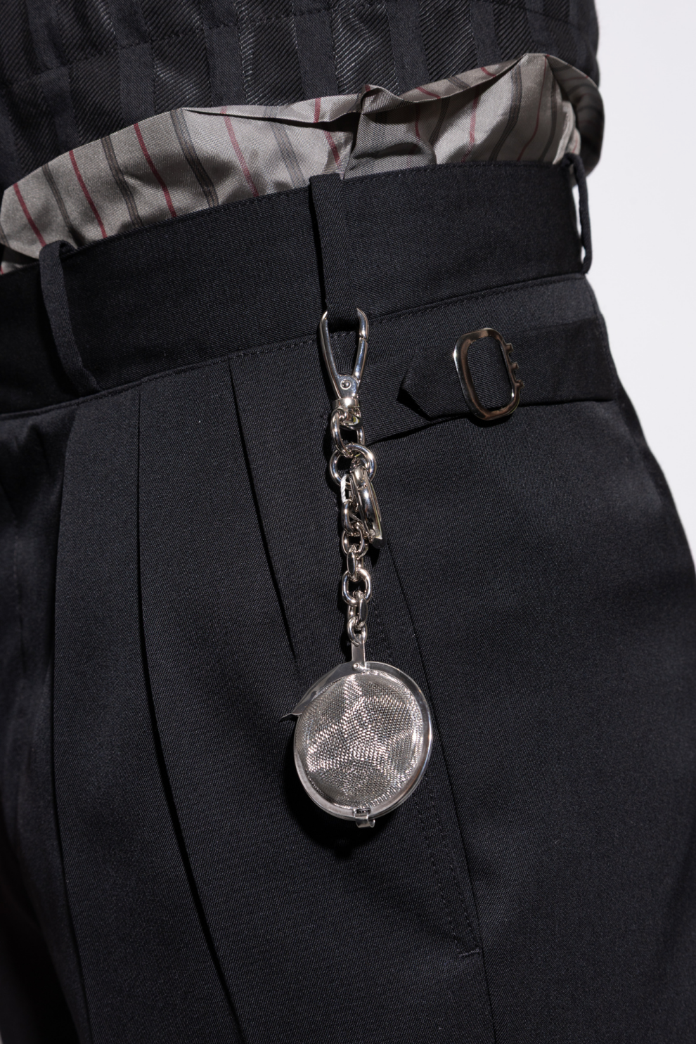 Брелок-подвеска в форме сита для чайной заварки от Maison Margiela — это интеллектуальный аксессуар с тонкой иронией, отражающий культовую деконструктивную эстетику Дома. Предмет повседневности переосмыслен и превращён в выразительный дизайнерский акцент, который мгновенно привлекает внимание.